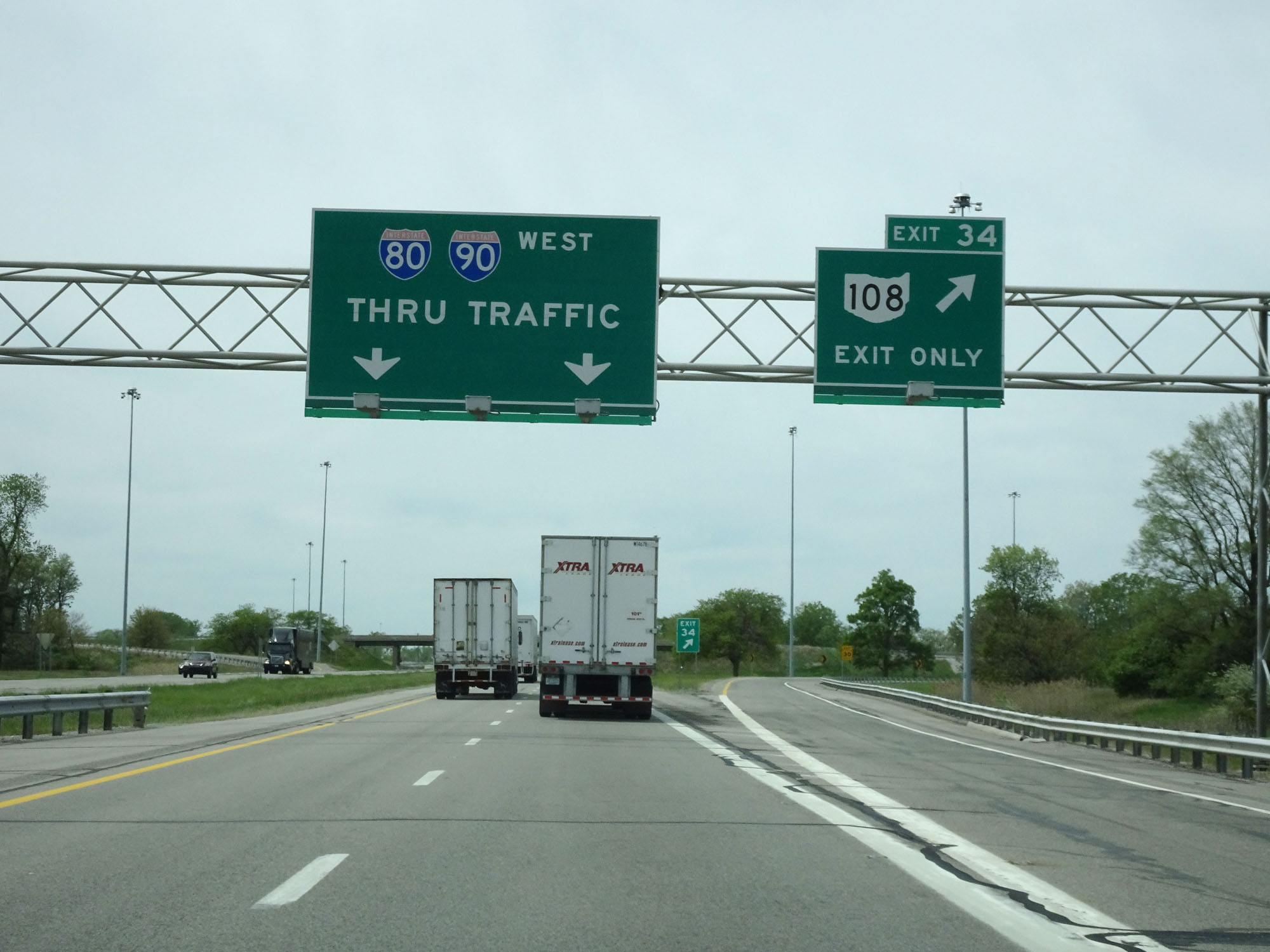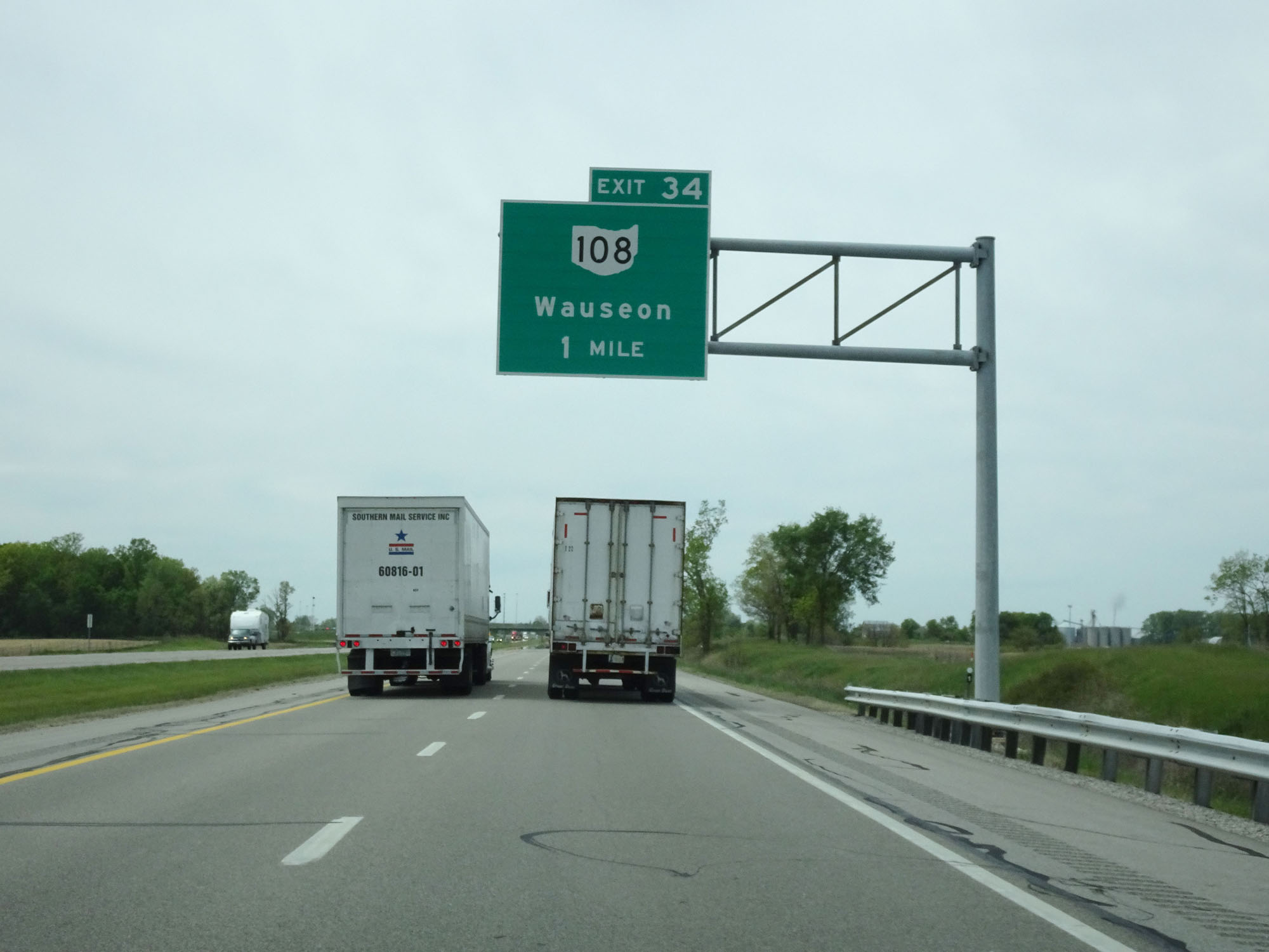 Interstate 80 / Interstate 90 West (Ohio Turnpike) at Exit 34: OH 108 - Wauseon  (Photo taken 5/20/16).
