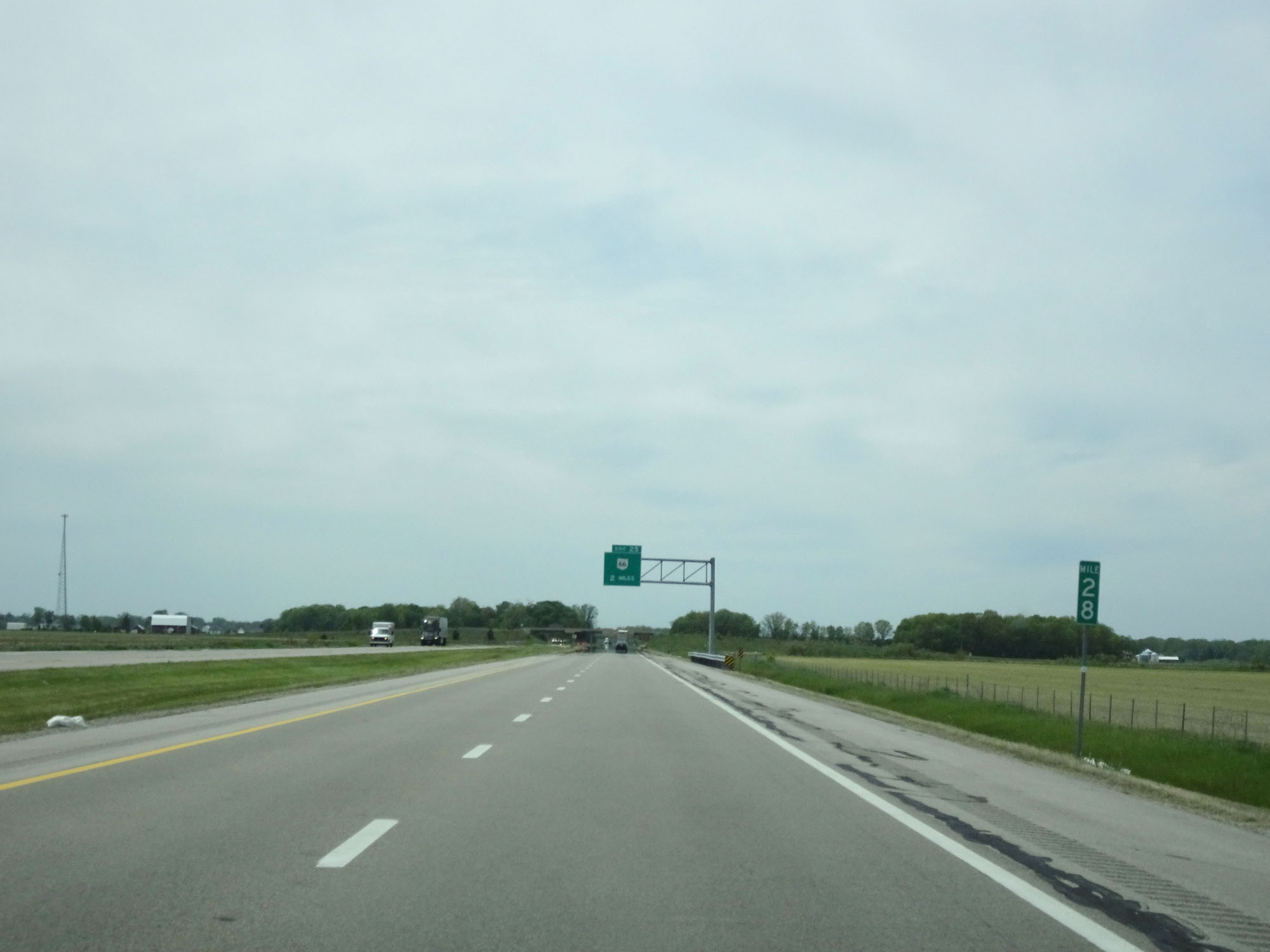 Interstate 80 / Interstate 90 West (Ohio Turnpike) at mile marker 28.  (Photo taken 5/20/16).