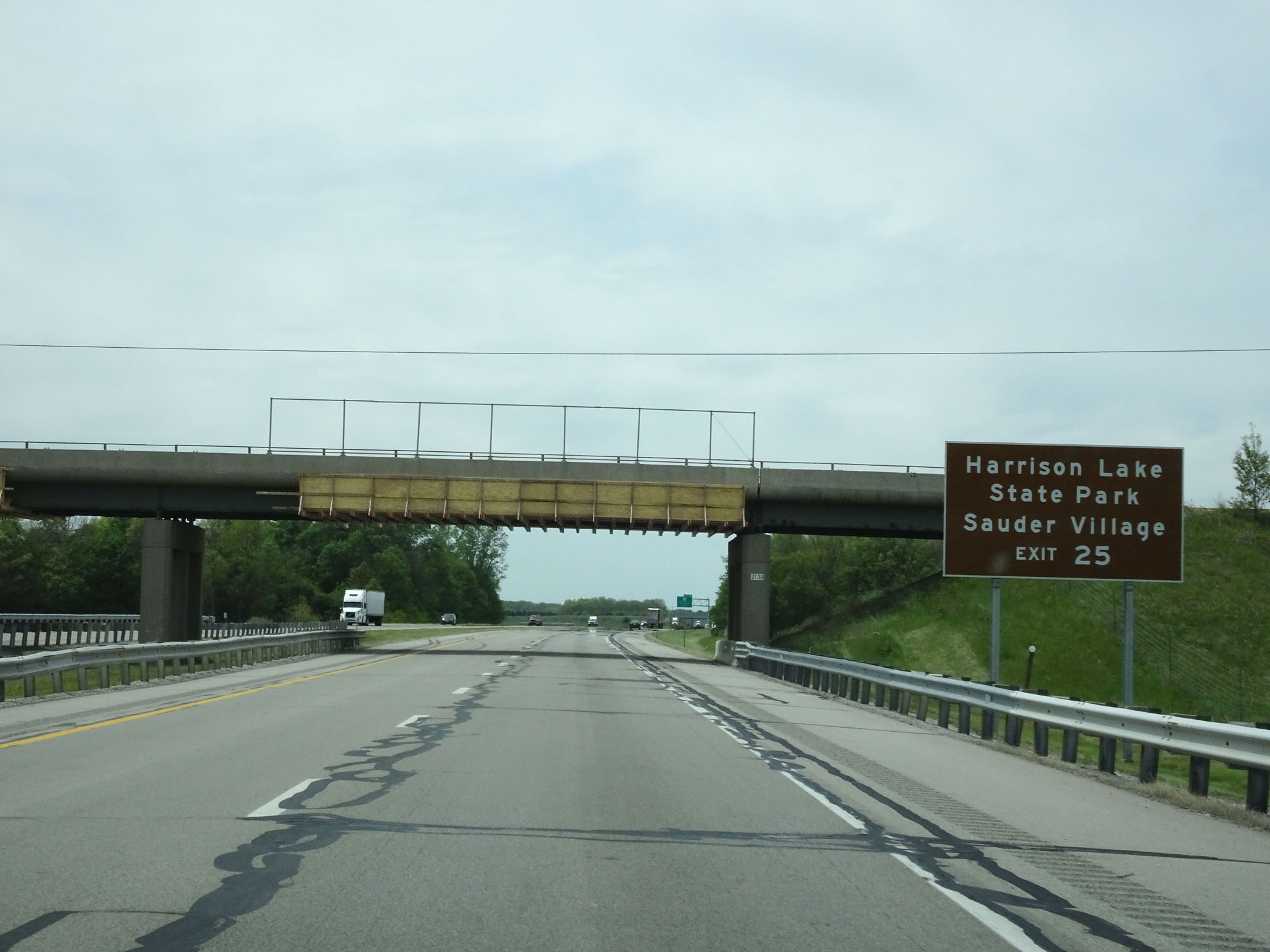 Take Exit 25 to Harrison Lake State Park and Sauder Village.  (Photo taken 5/20/16).