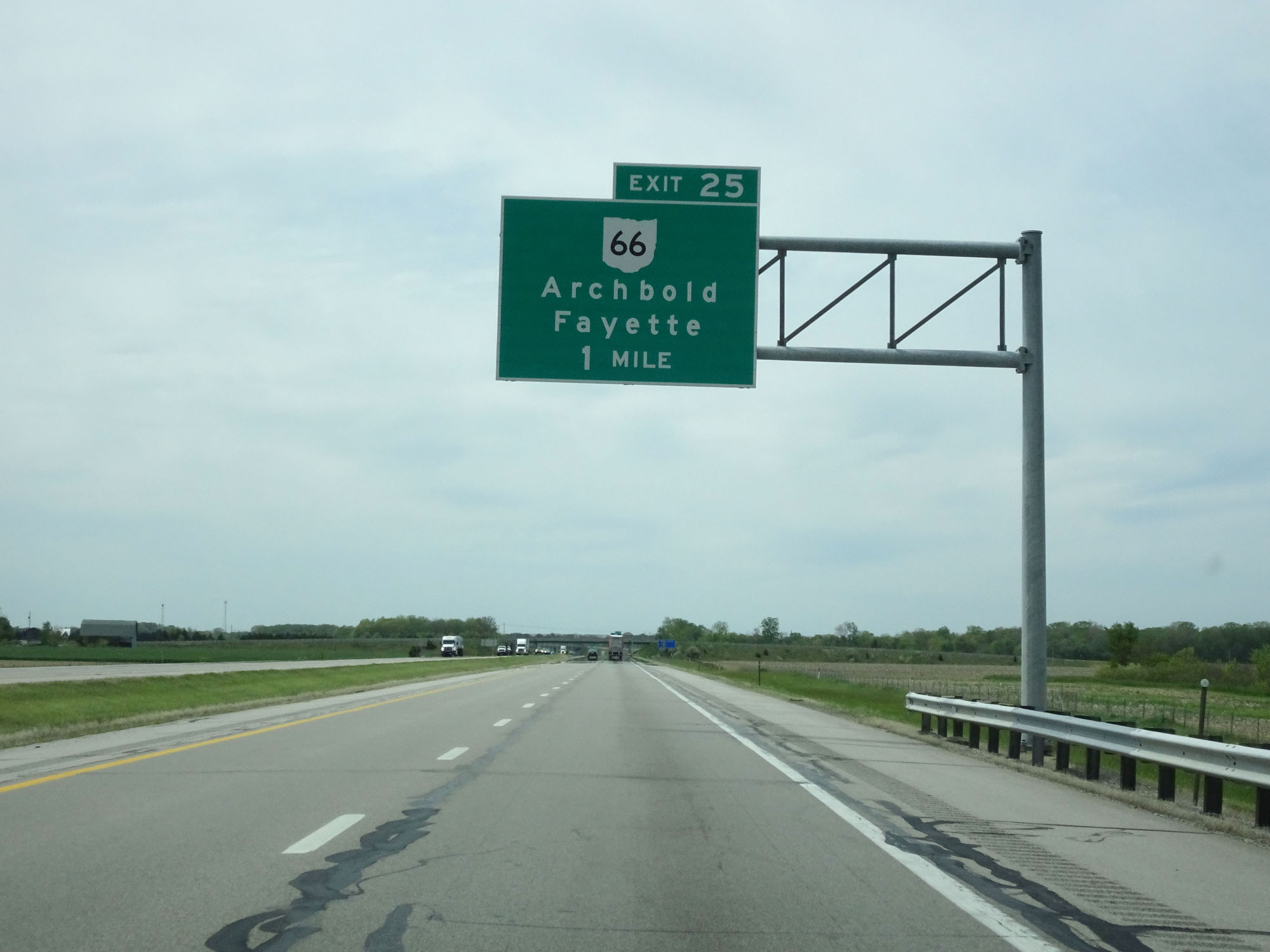 Interstate 80 / Interstate 90 West (Ohio Turnpike) at Exit 25: OH 66 - Archbold / Fayette  (Photo taken 5/20/16).
