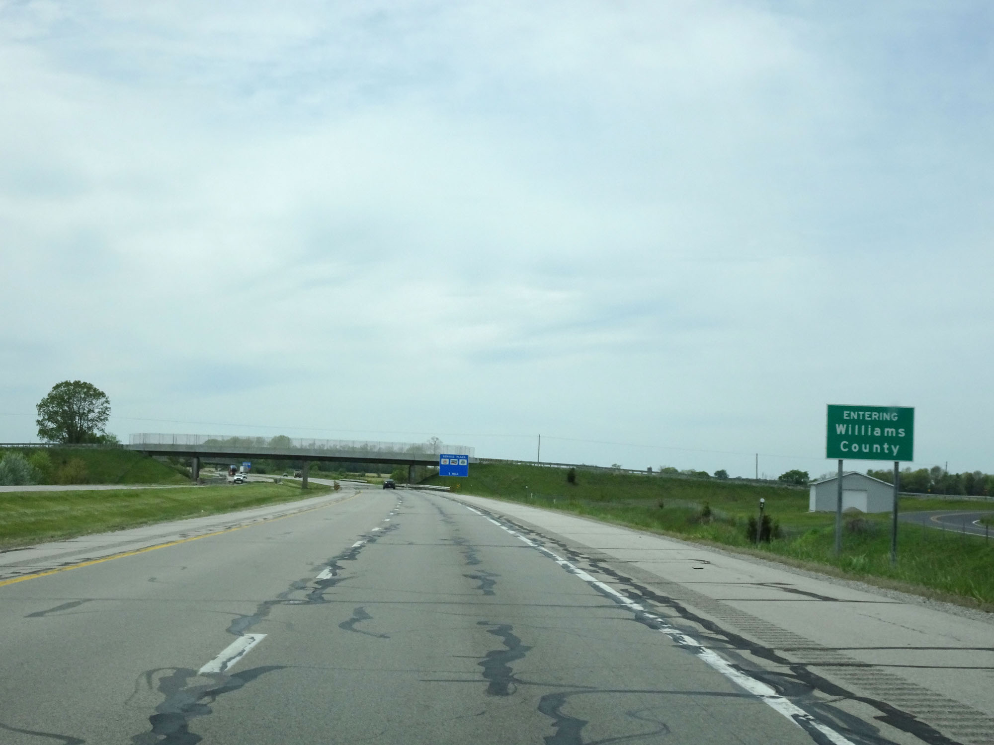 Interstate 80 / Interstate 90 West (Ohio Turnpike) entering Williams County.  (Photo taken 5/20/16).