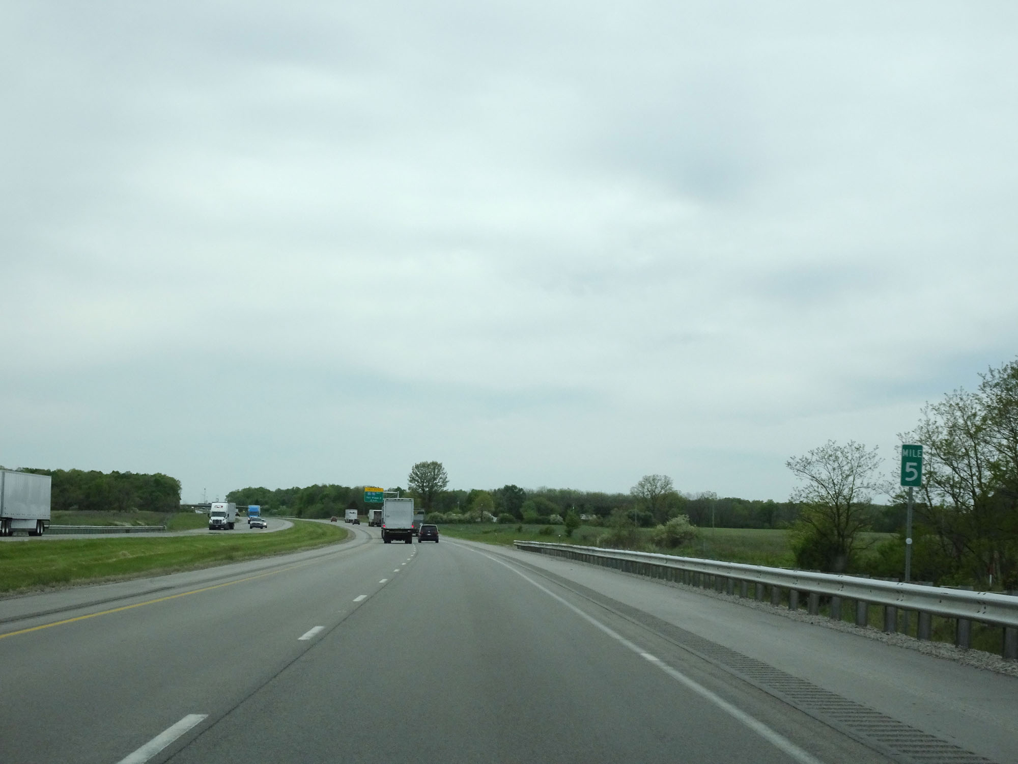 Interstate 80 / Interstate 90 West (Ohio Turnpike) at mile marker 5.  (Photo taken 5/20/16).