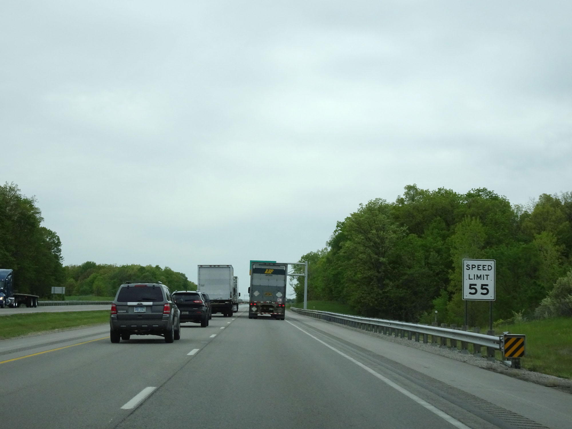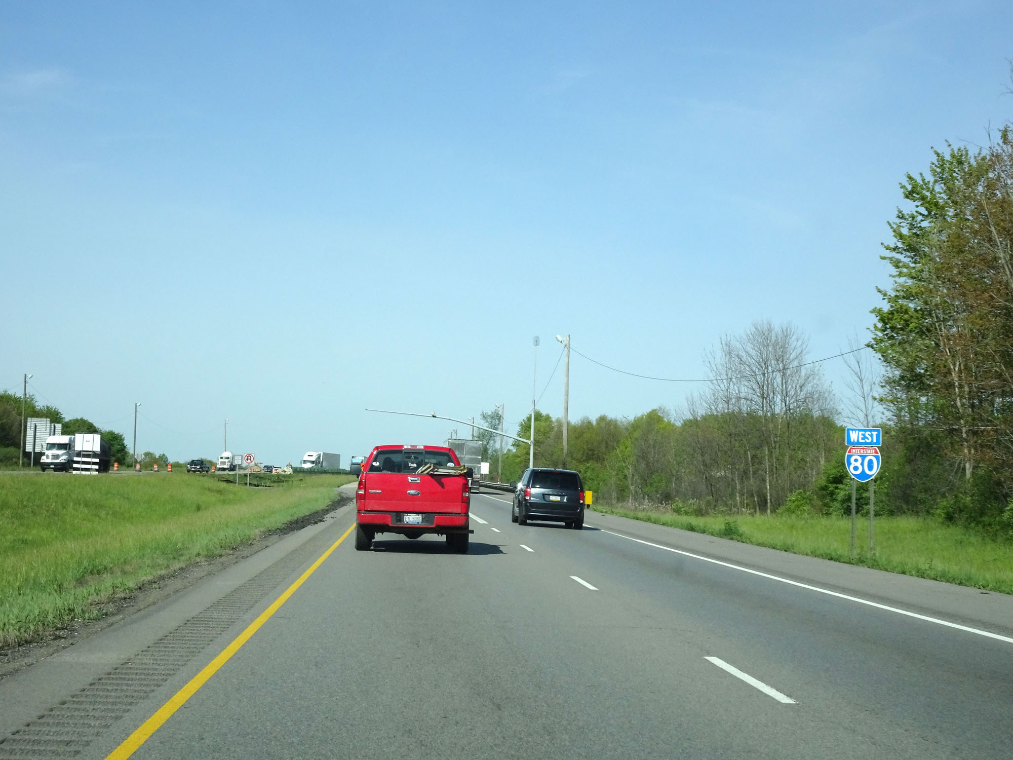 The speed limit on Interstate 80 West in Ohio starts out at 65 mph for all traffic.  (Photo taken 5/20/16).
