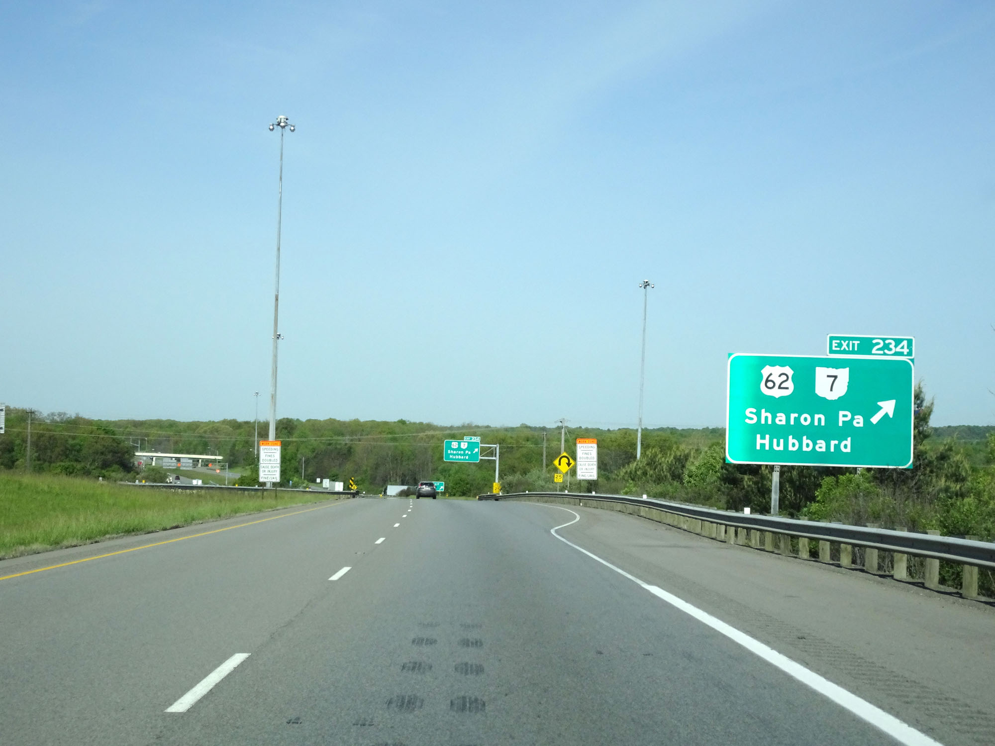 Interstate 80 West at Exit 234: US 62 / OH 7 - Sharon, PA / Hubbard  (Photo taken 5/20/16).
