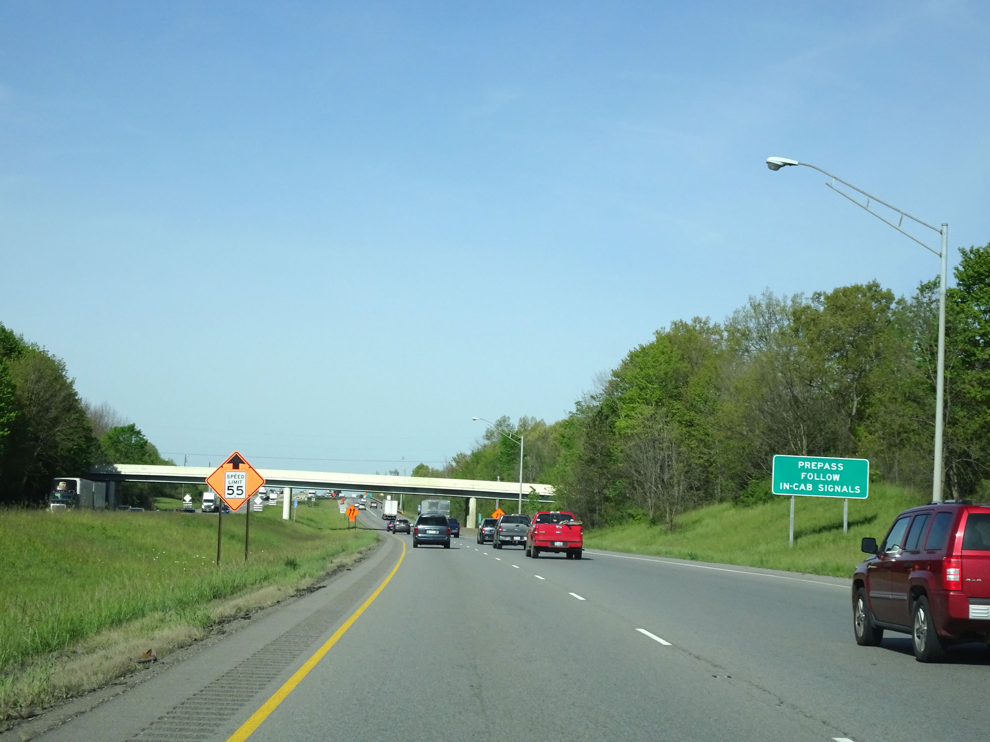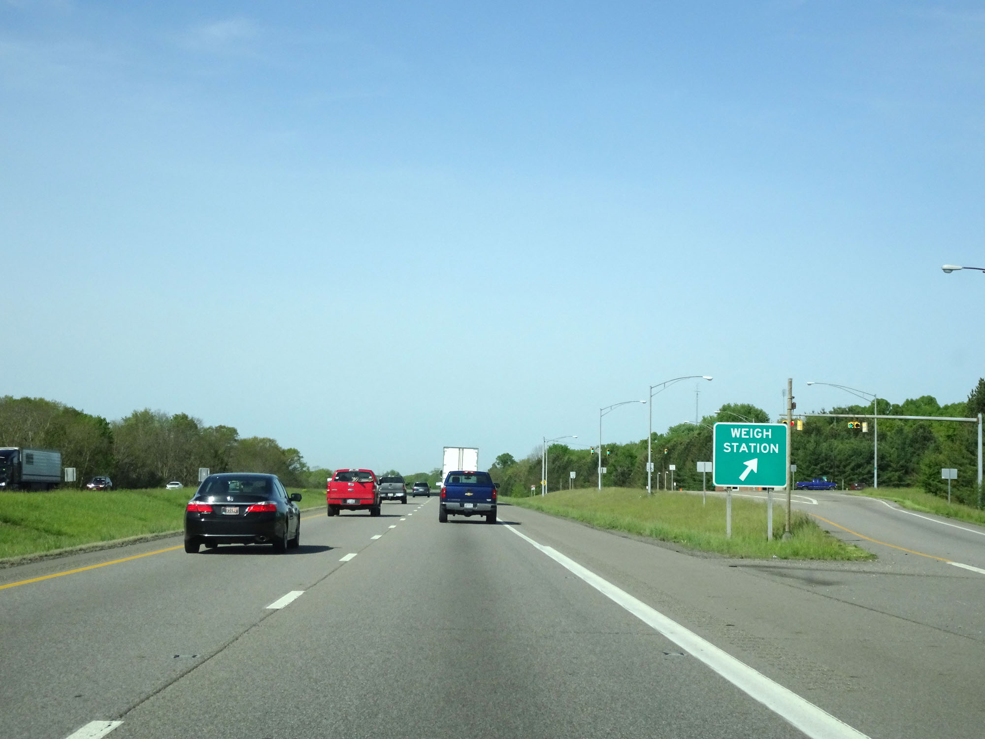 Approaching the Weigh Station ahead, this sign reminds trucks equipped with PrePass that they can follow the signals on their transponder.  (Photo taken 5/20/16).