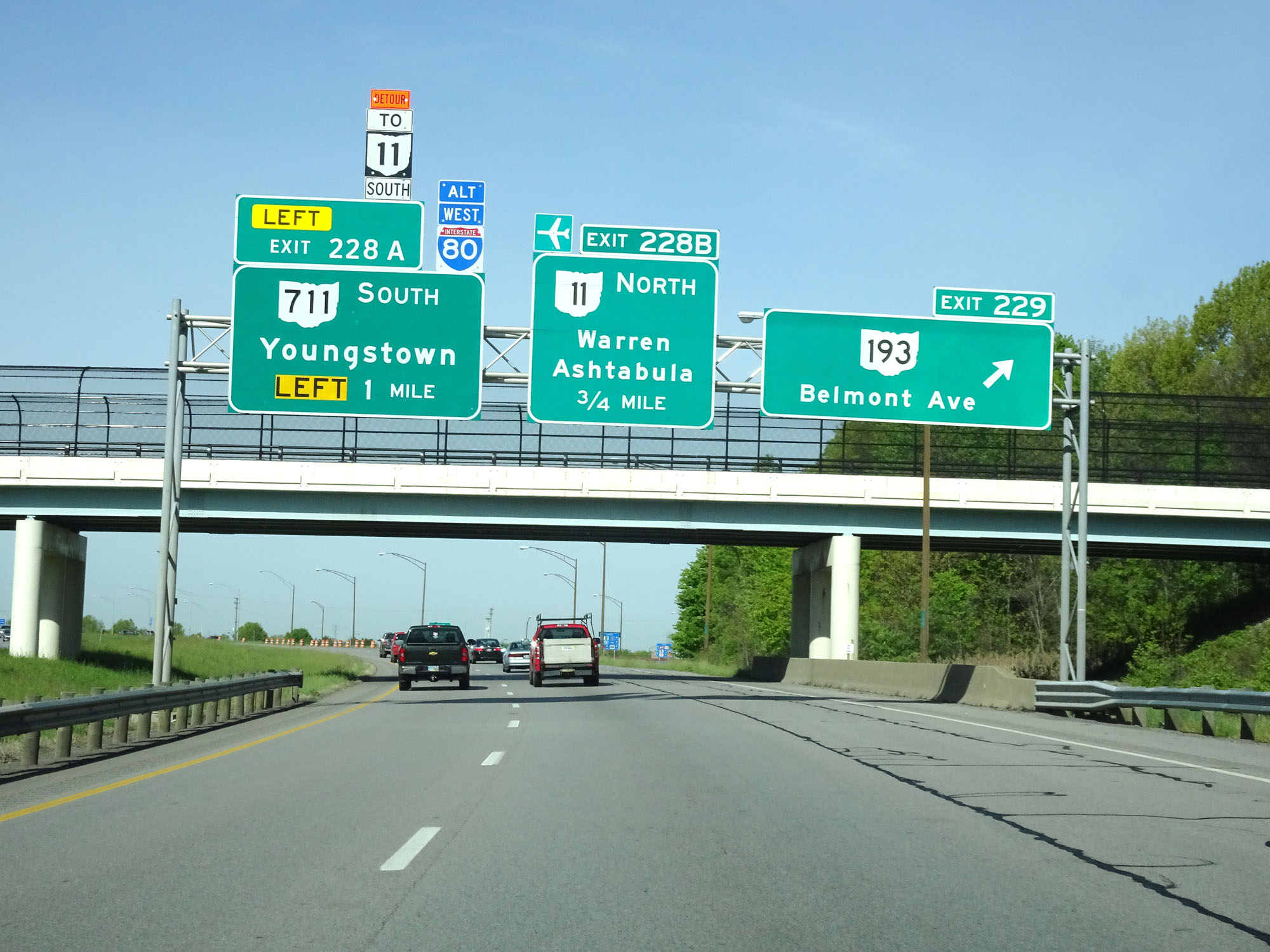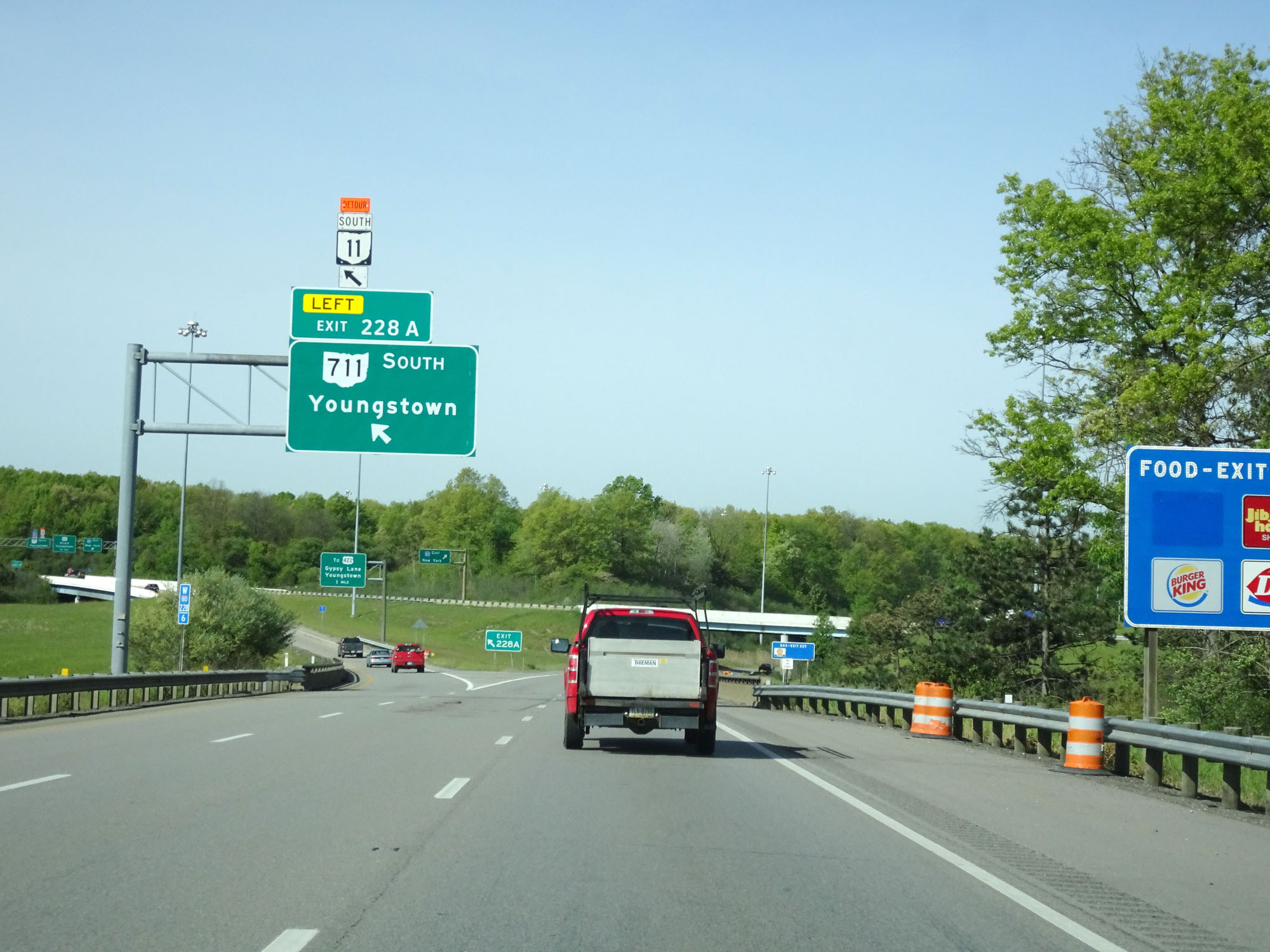 Interstate 80 West at Exit 228A: OH 711 South - Youngstown  (Photo taken 5/20/16).
