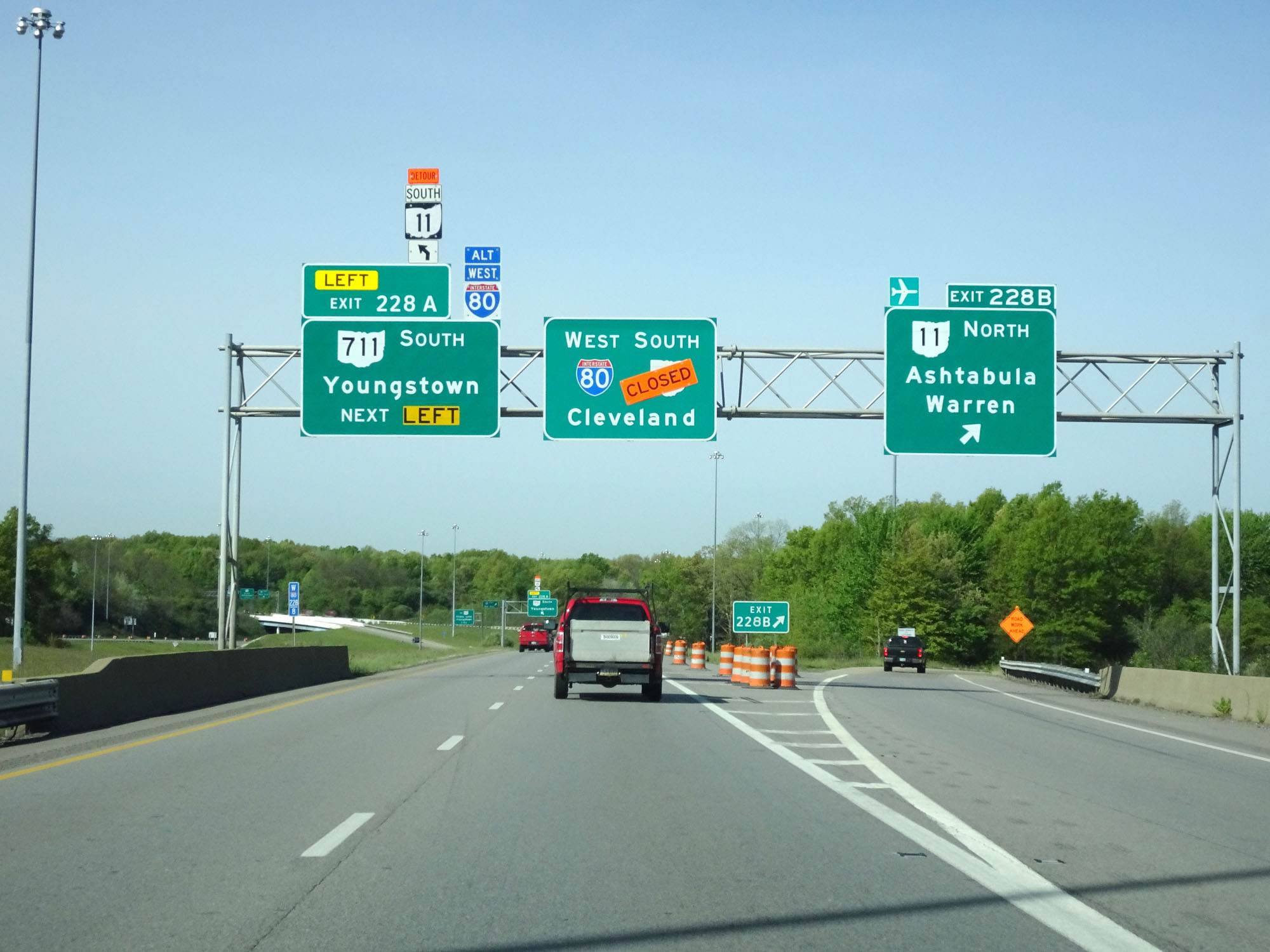 Interstate 80 West at Exit 228B: OH 11 North - Ashtabula / Warren  (Photo taken 5/20/16).