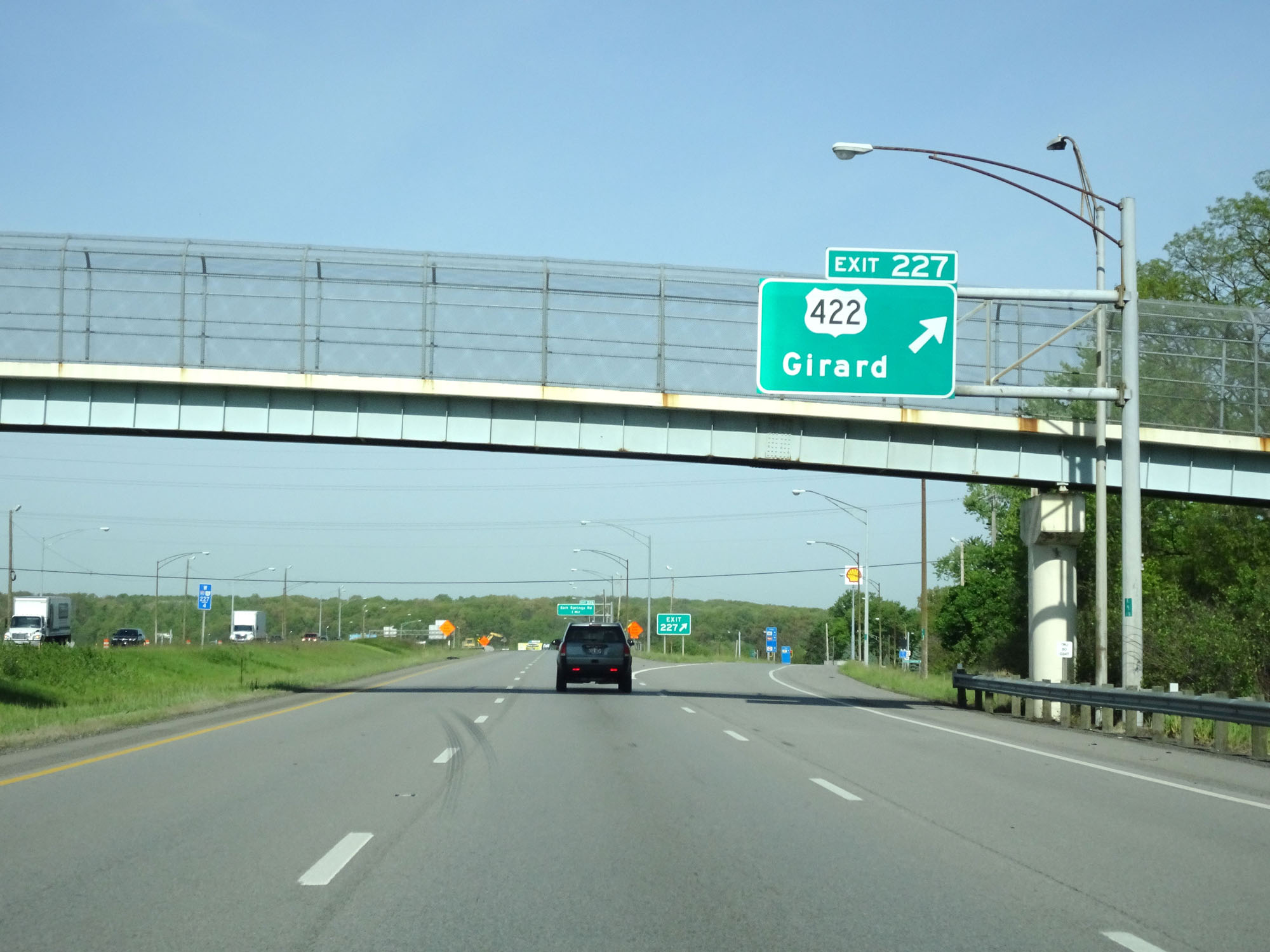 Interstate 80 West at Exit 227: US 422 - Girard  (Photo taken 5/20/16).