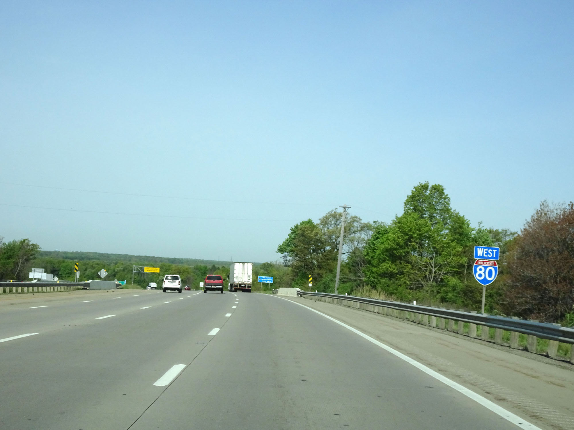 Interstate 80 West (Ohio Turnpike) as it enters Trumbull County.  (Photo taken 5/20/16).