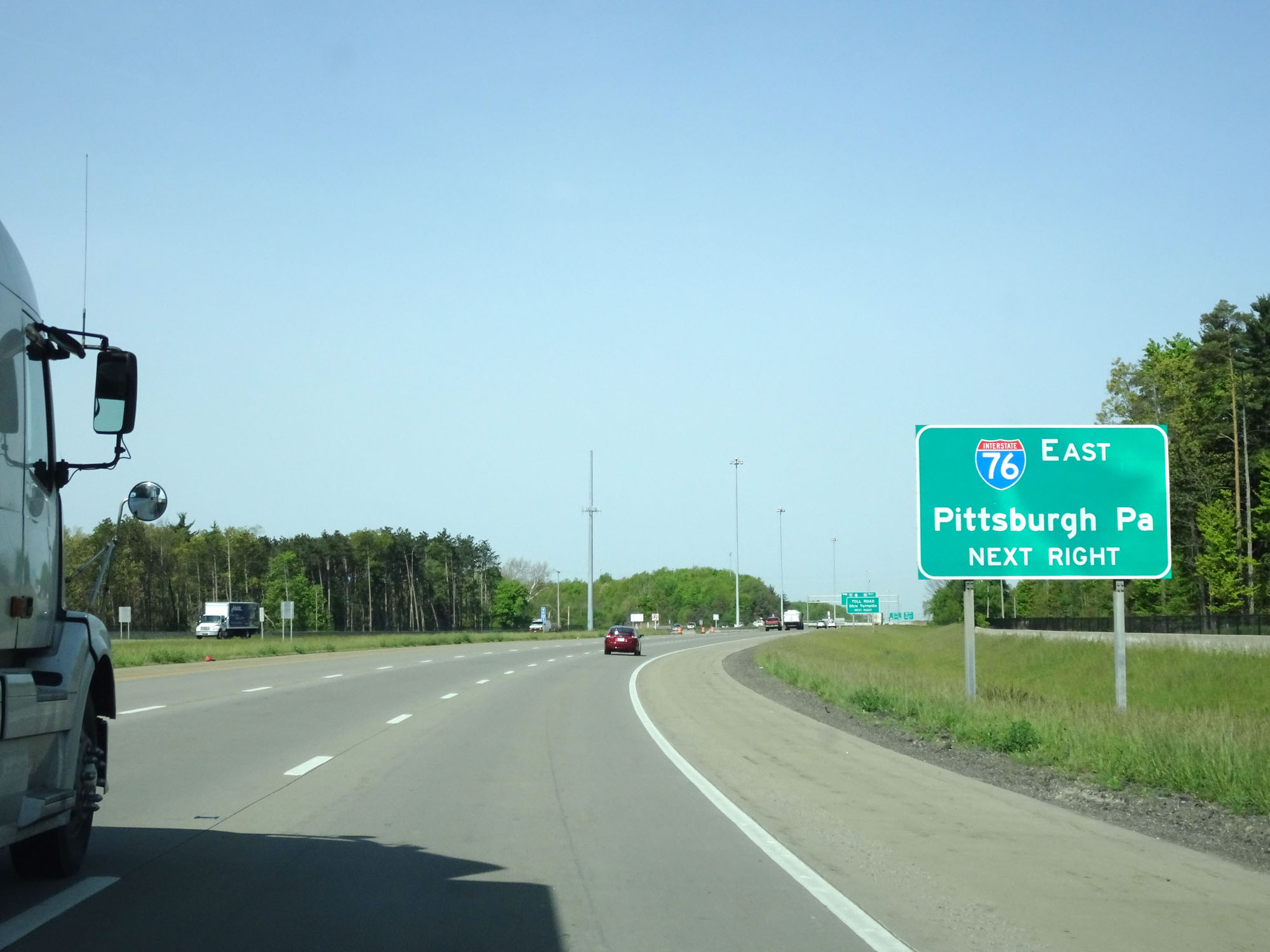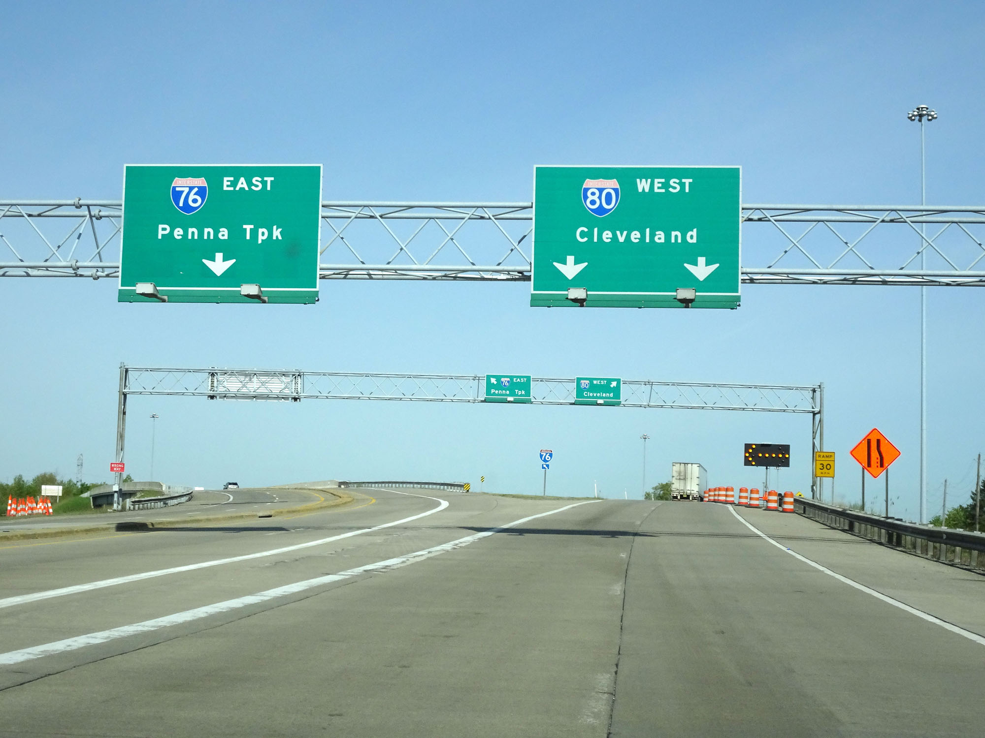 Take the next right (Interstate 80 West toward the Ohio Turnpike) to Interstate 76 East toward Pittsburgh, PA.  (Photo taken 5/20/16).