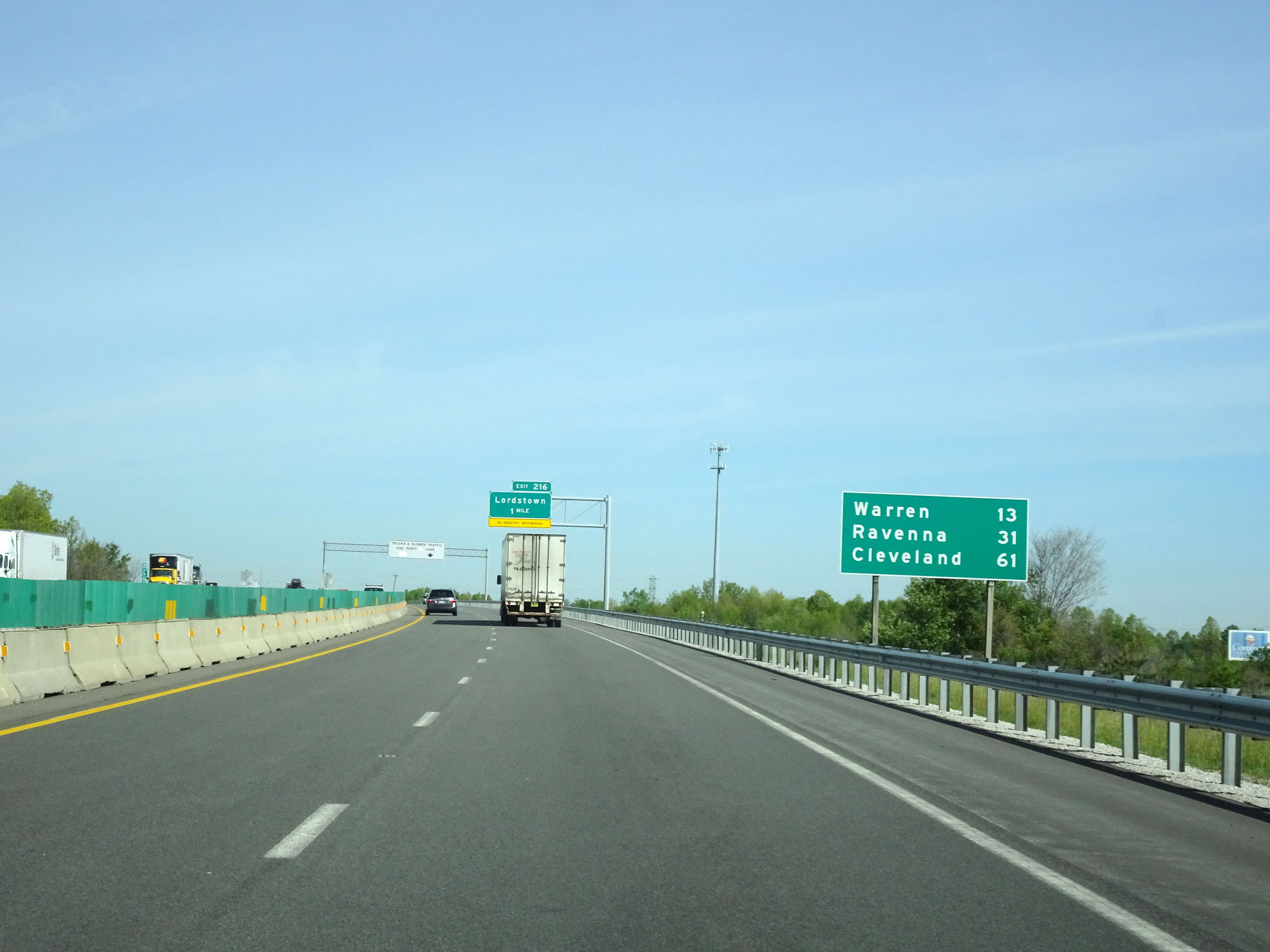 Interstate 80 West at Exit 224: OH 11 South - Canfield  (Photo taken 5/20/16).
