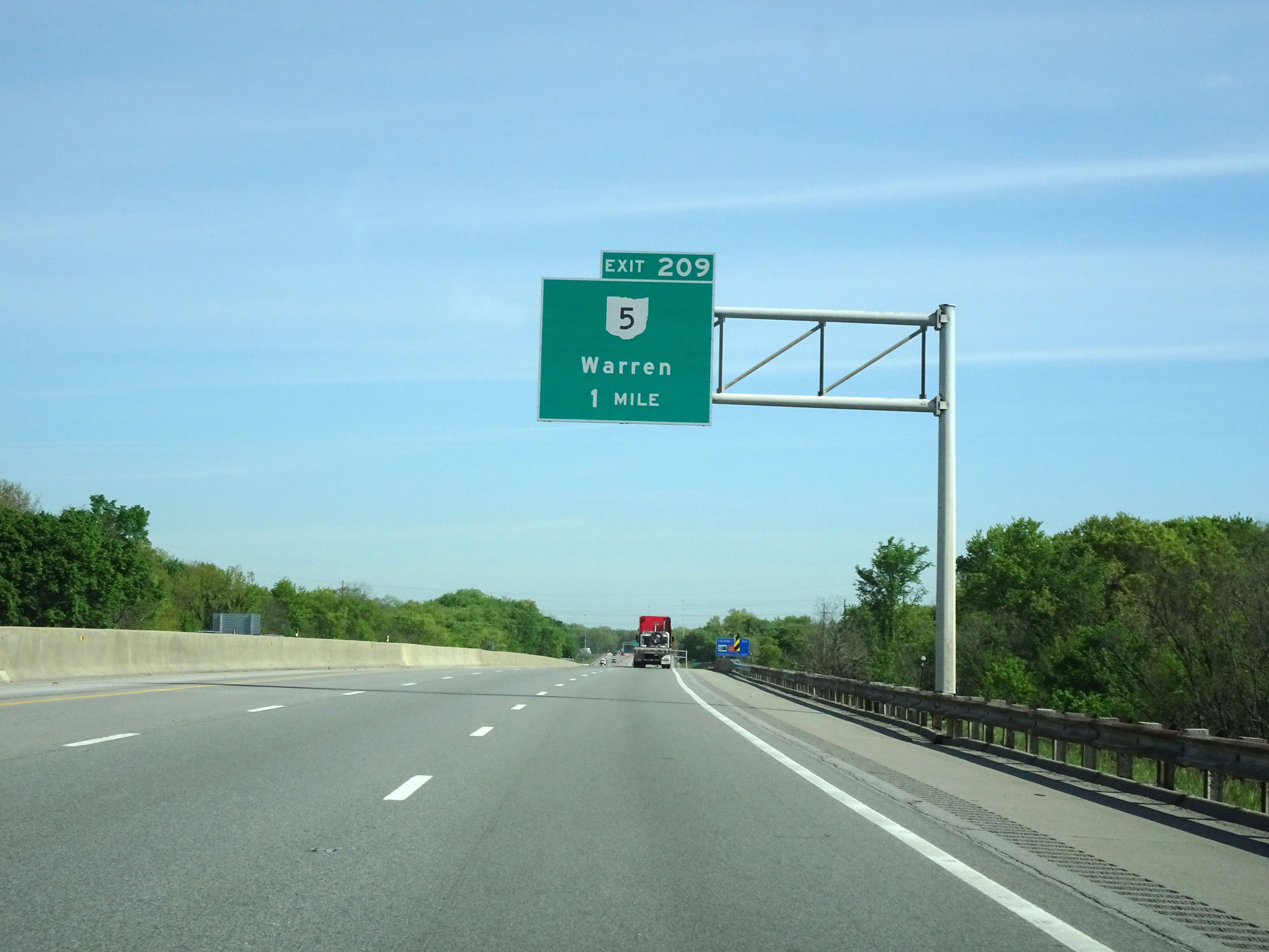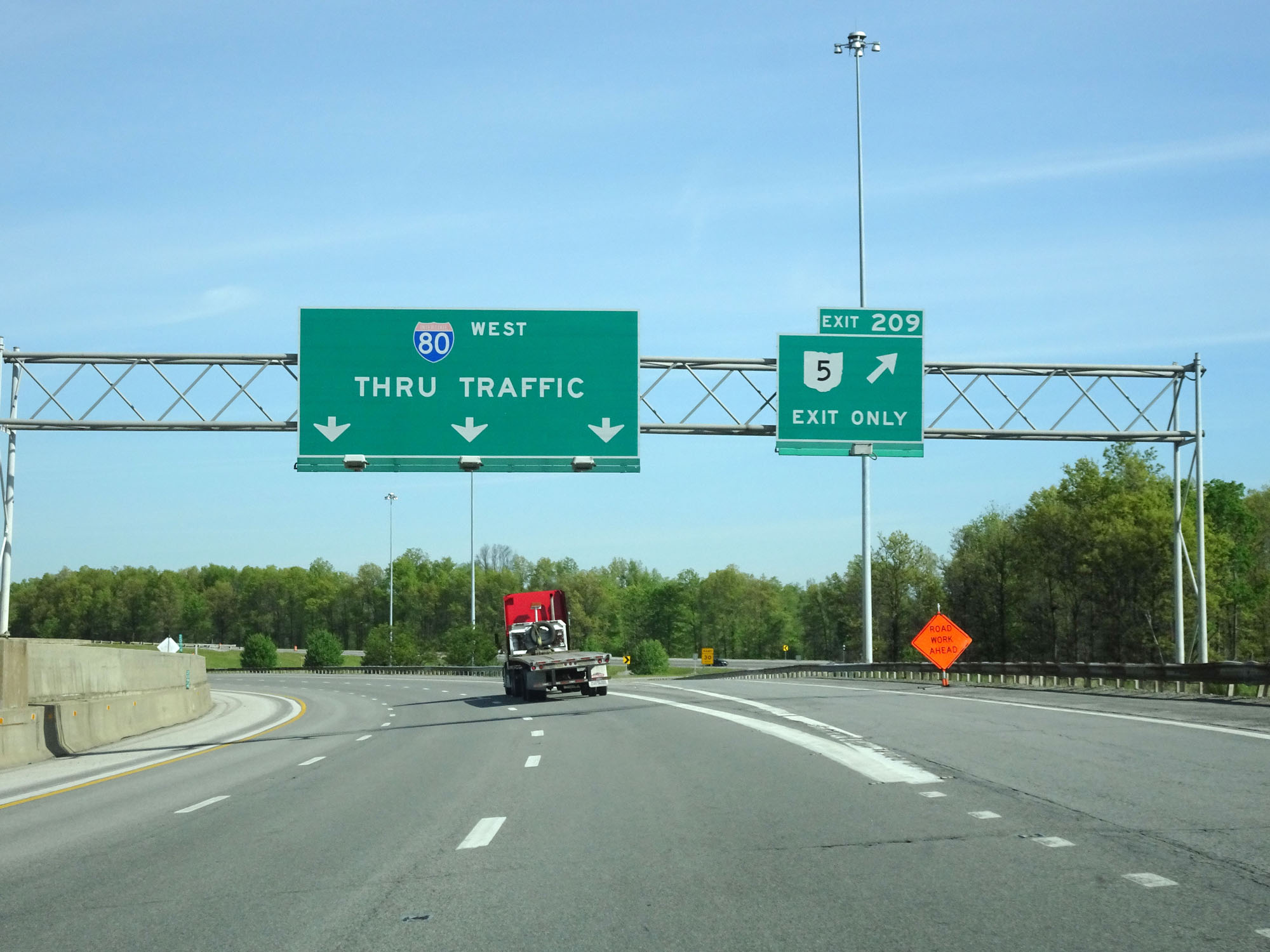 Interstate 80 West (Ohio Turnpike) at Exit 209: OH 5 - Warren  (Photo taken 5/20/16).