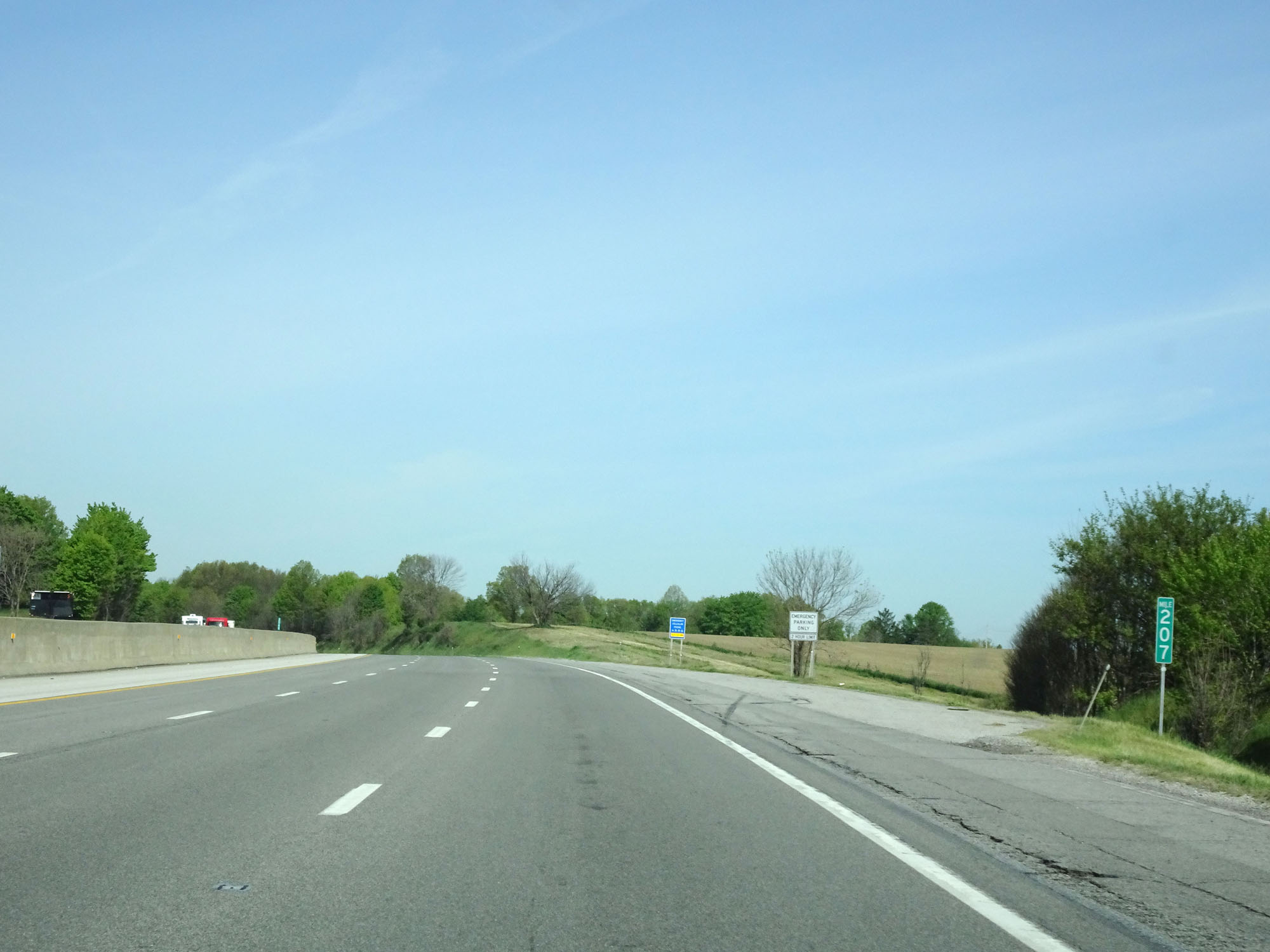 Interstate 80 West (Ohio Turnpike) at mile marker 207.  (Photo taken 5/20/16).