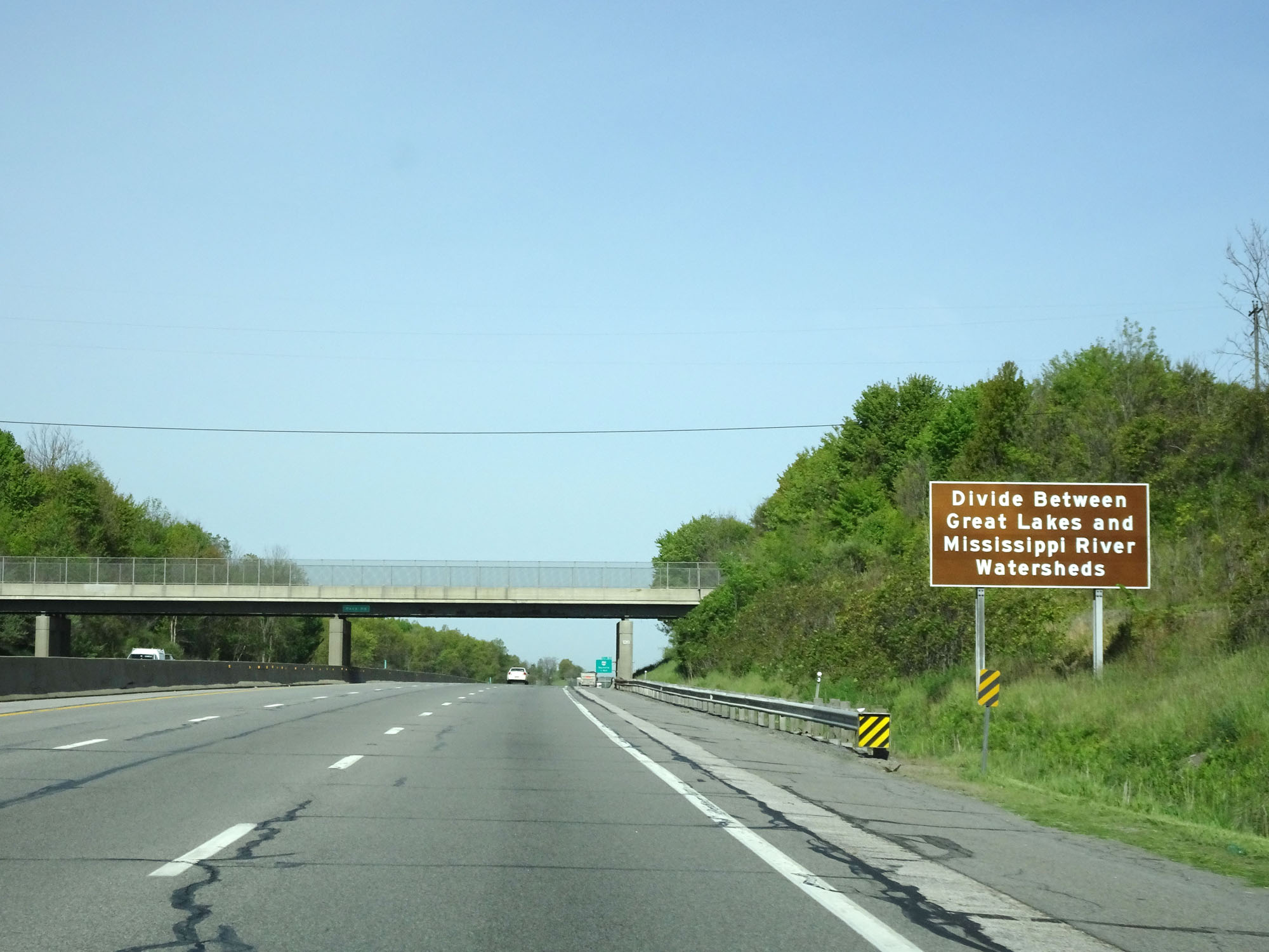 Interstate 80 West (Ohio Turnpike) as it crosses the Divide Between the Great Lakes and Mississippi River Watersheds.  (Photo taken 5/20/16).