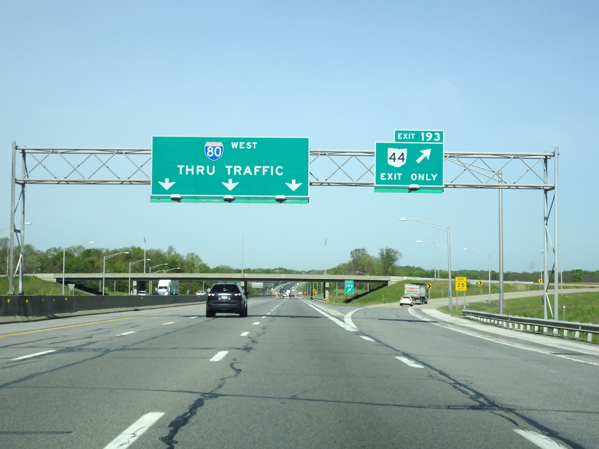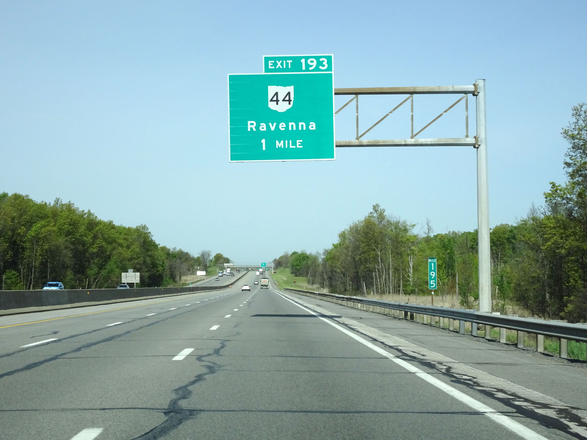 Interstate 80 West (Ohio Turnpike) at Exit 193: OH 44 - Ravenna  (Photo taken 5/20/16).