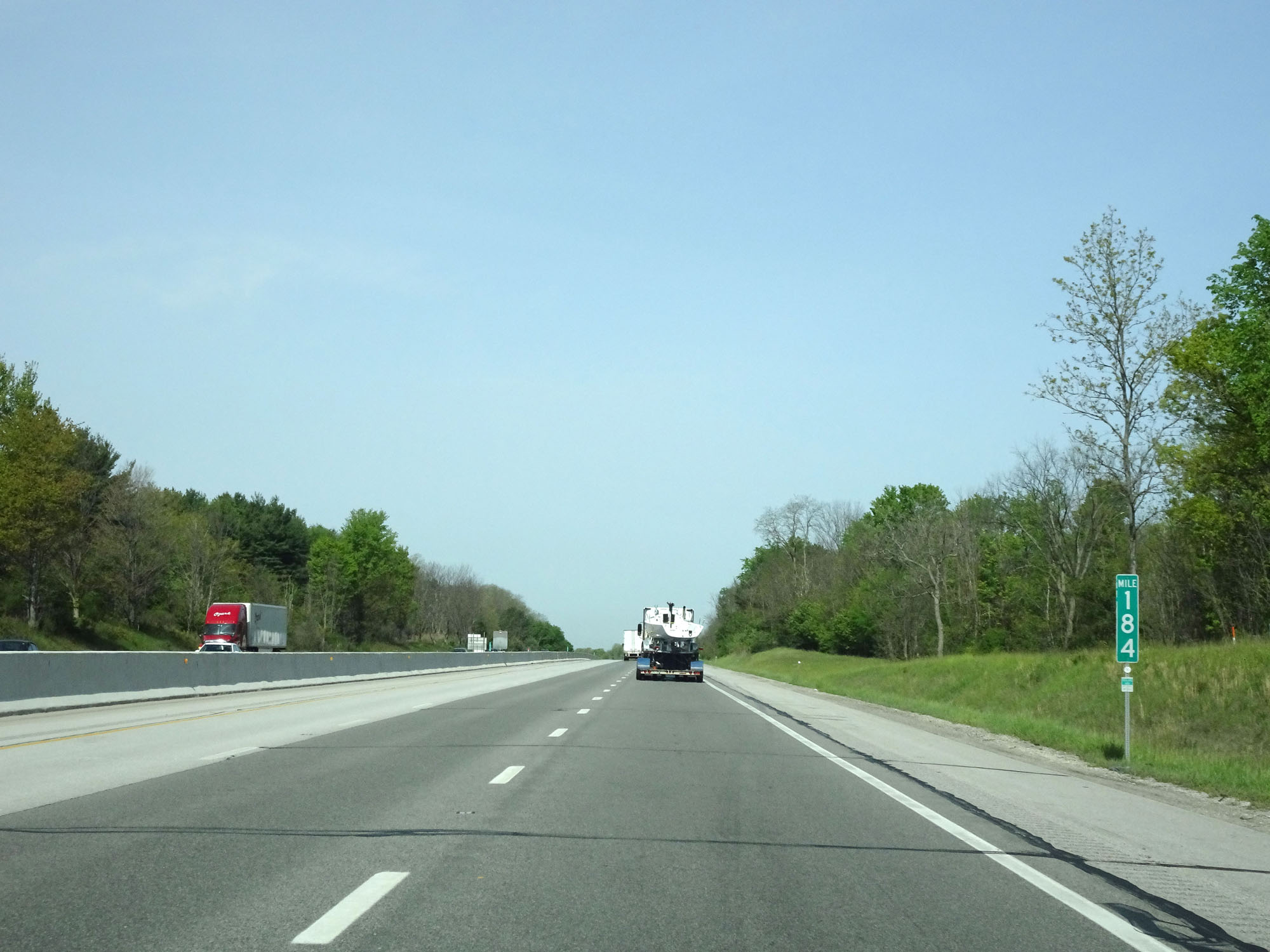 Interstate 80 West (Ohio Turnpike) at mile marker 184.  (Photo taken 5/20/16).