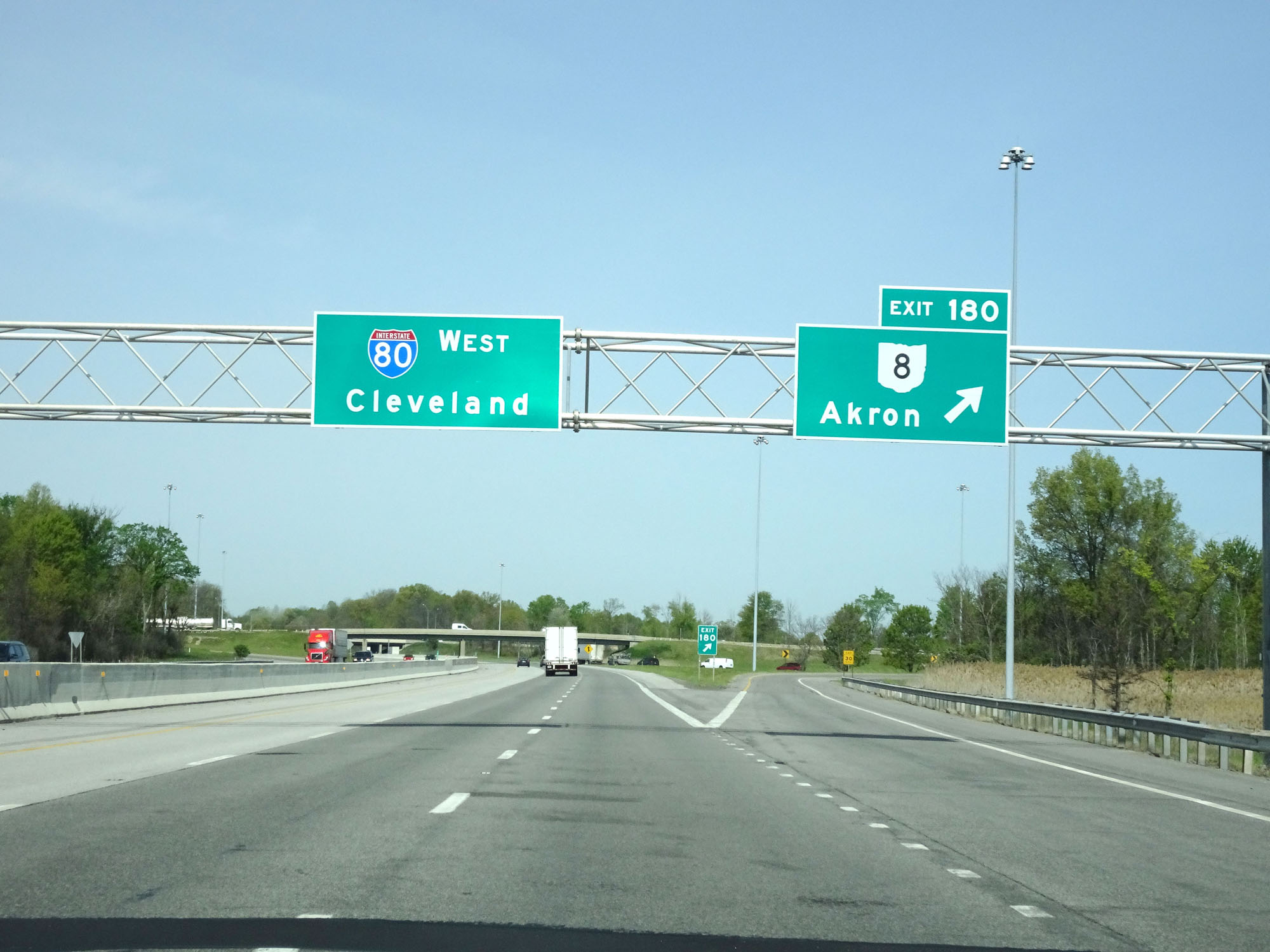 Interstate 80 West (Ohio Turnpike) at Exit 180: OH 8 - Akron  (Photo taken 5/20/16).