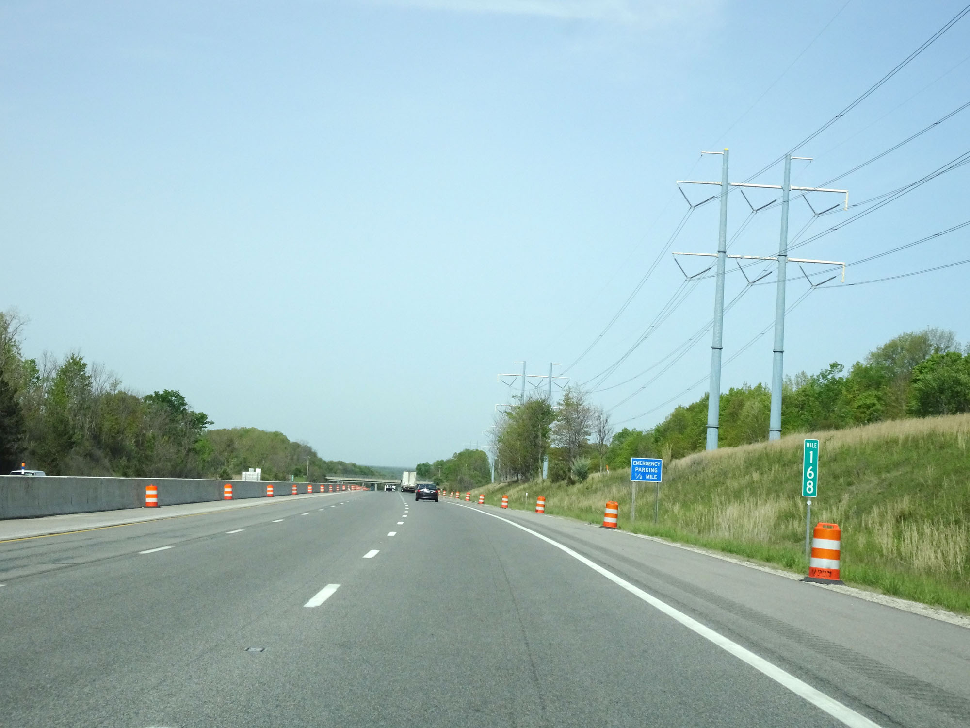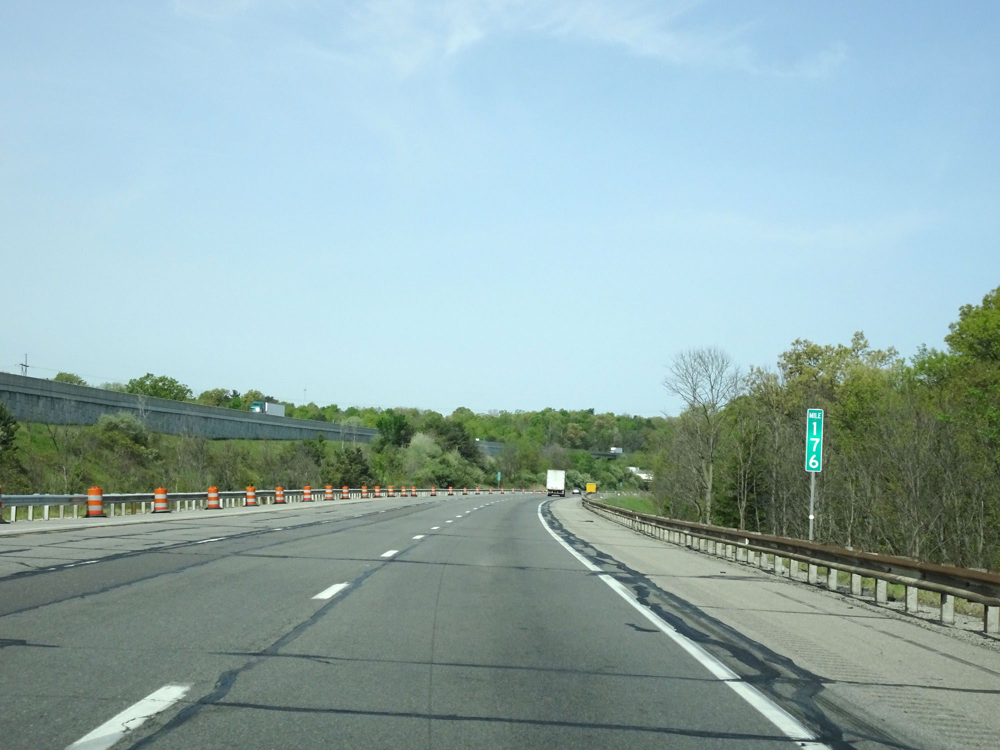 Interstate 80 West (Ohio Turnpike) at mile marker 176.  (Photo taken 5/20/16).