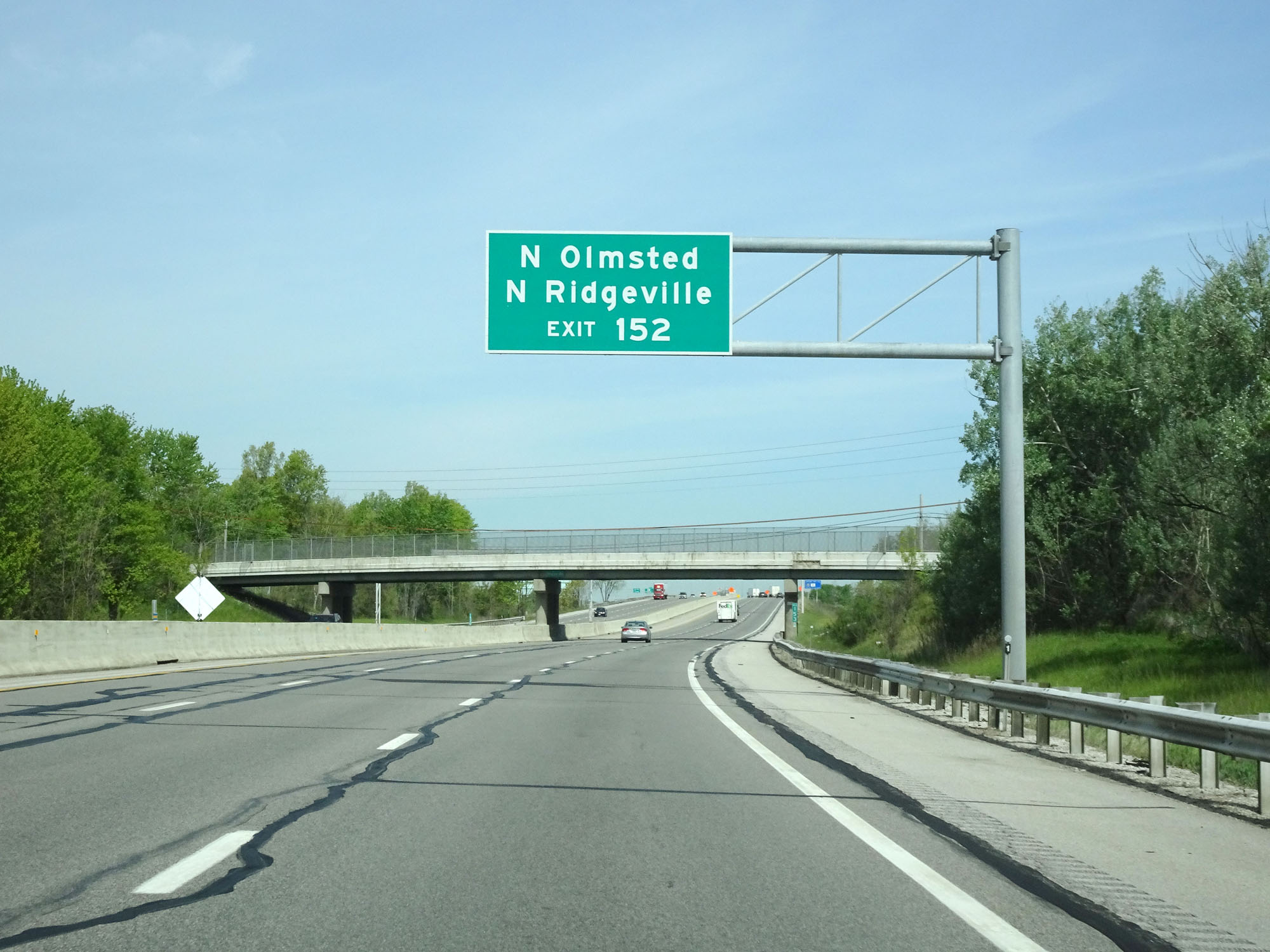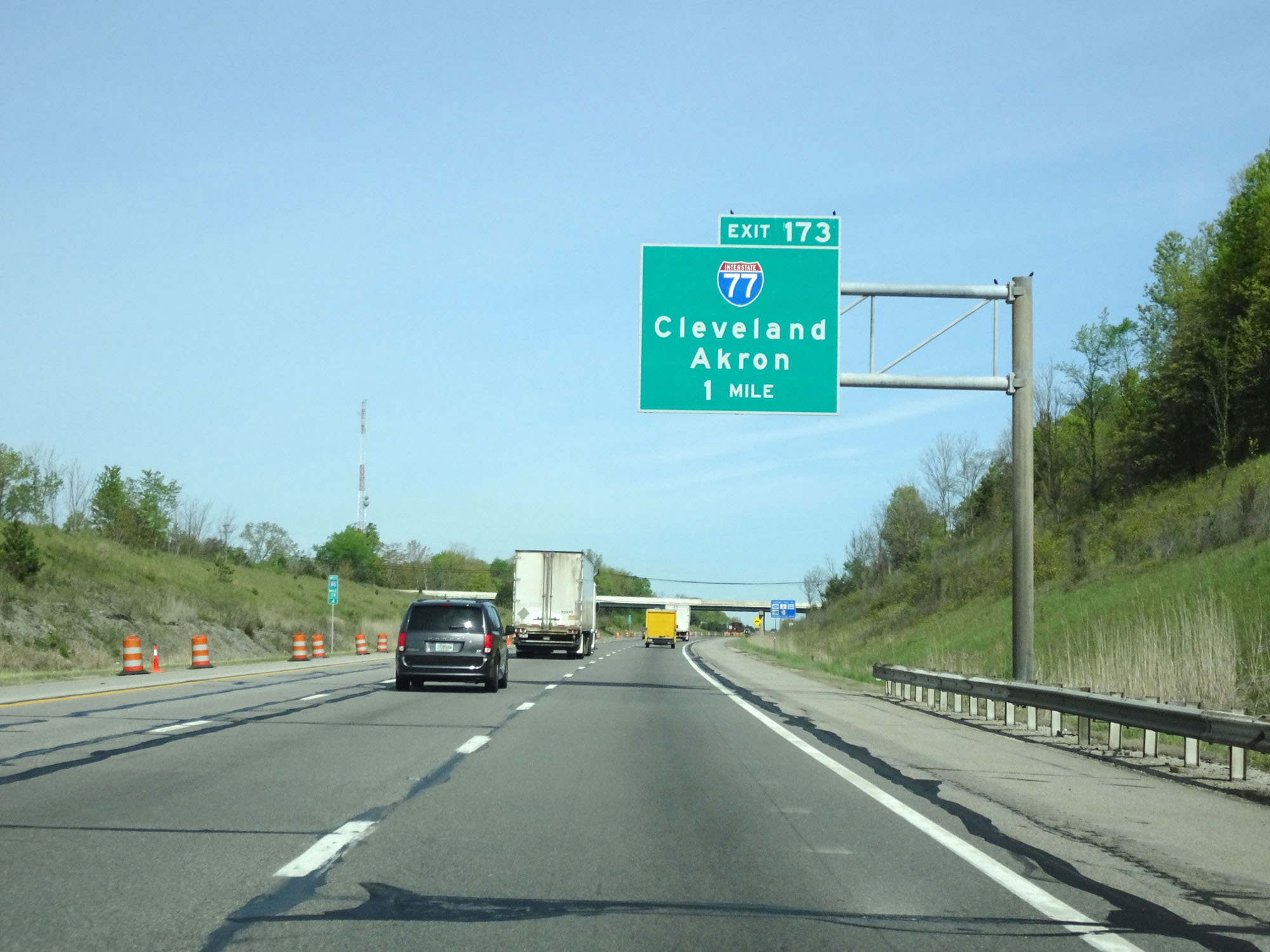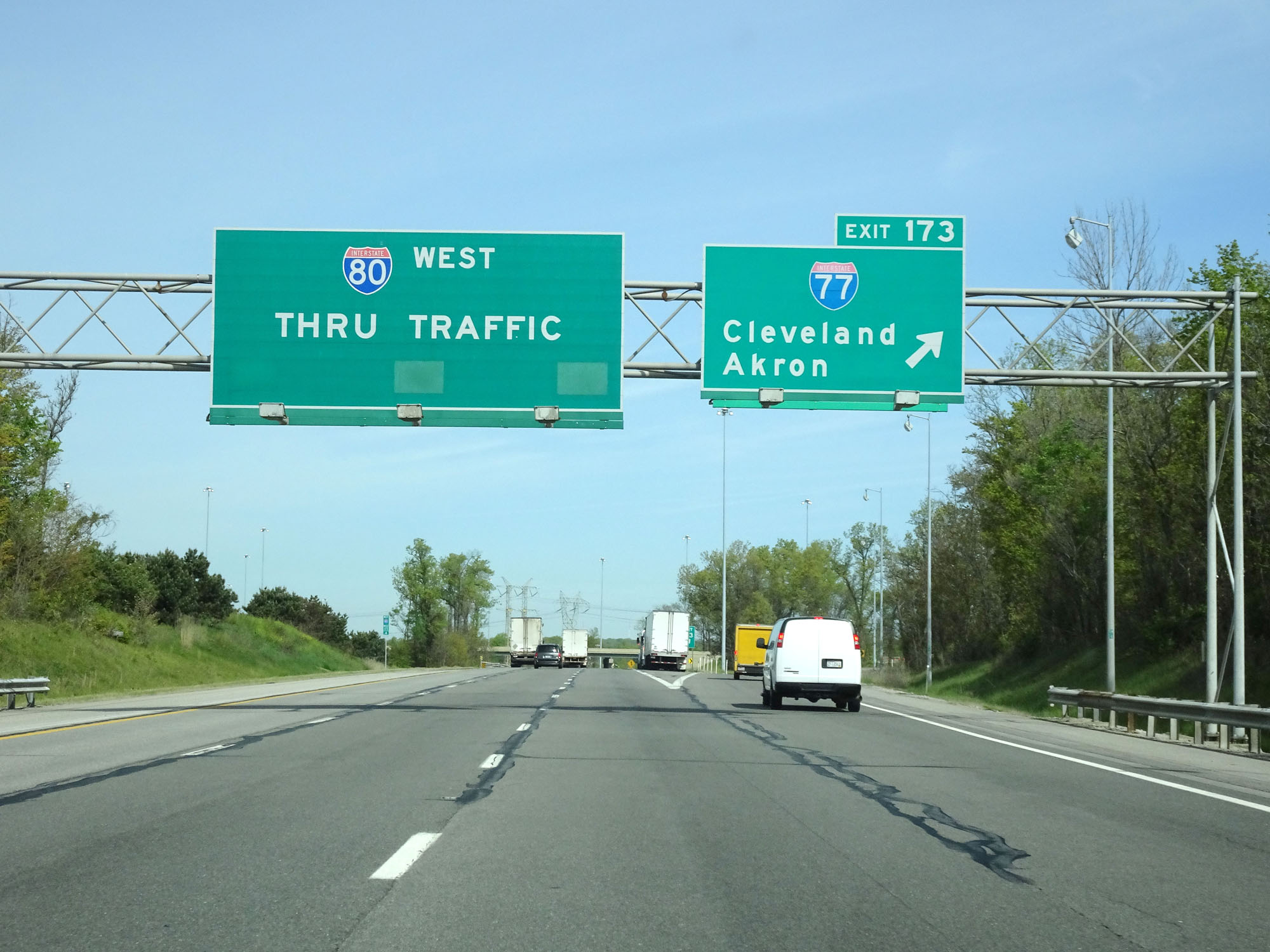 Interstate 80 West (Ohio Turnpike) at Exit 173: Interstate 77 - Cleveland / Akron  (Photo taken 5/20/16).
