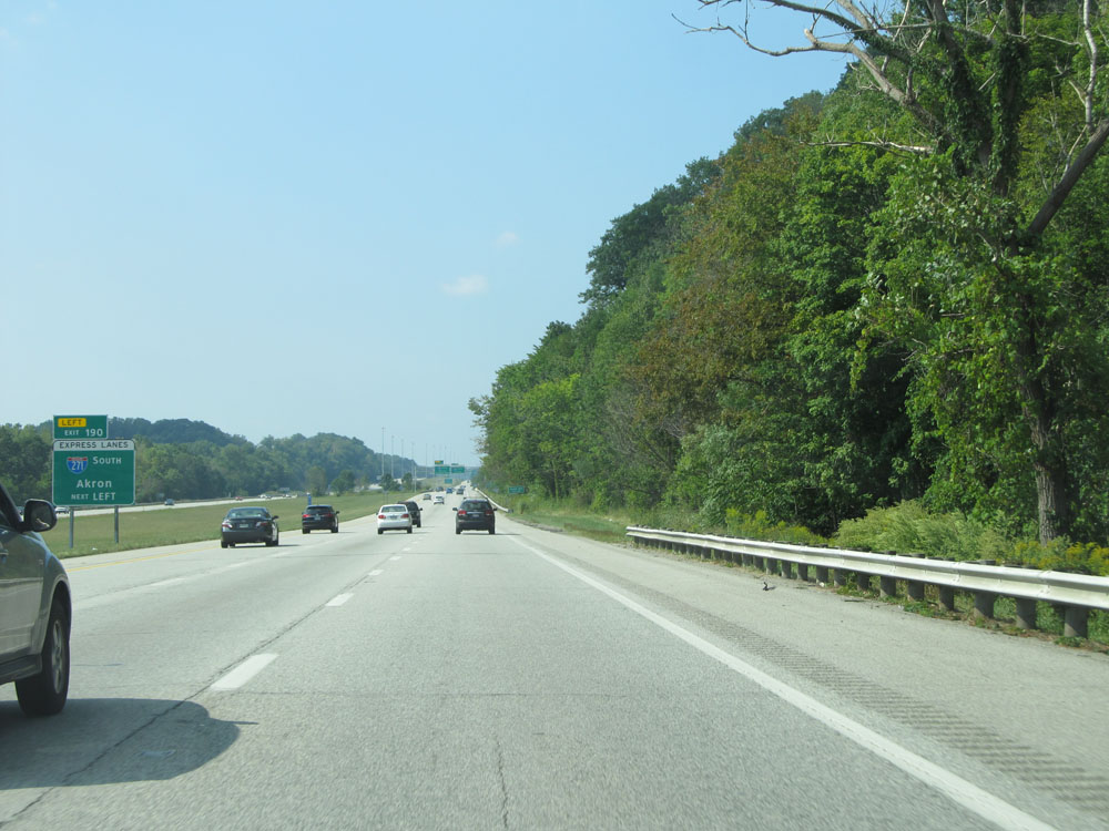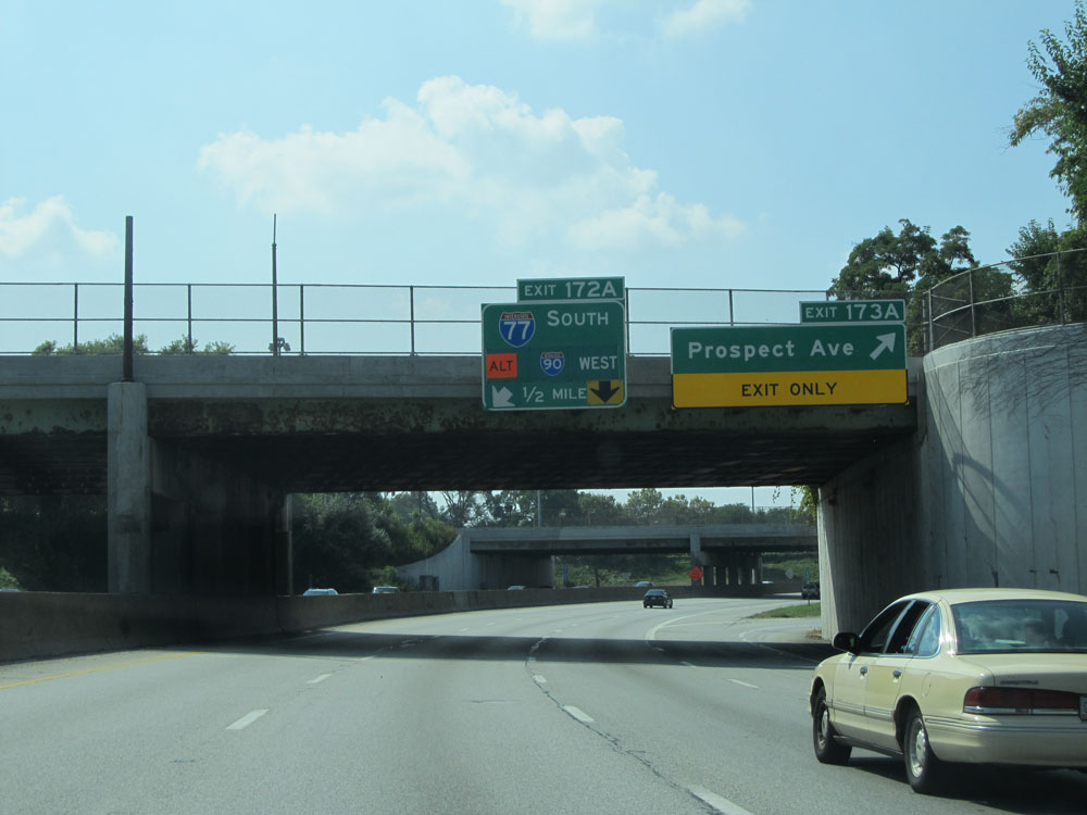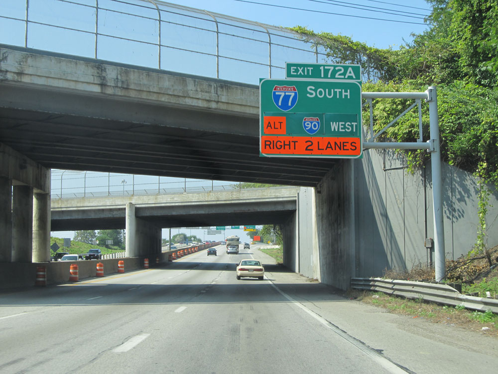 Interstate 90 West at Exit 172A: Interstate 77 South - Akron (Photo taken 9/6/15).