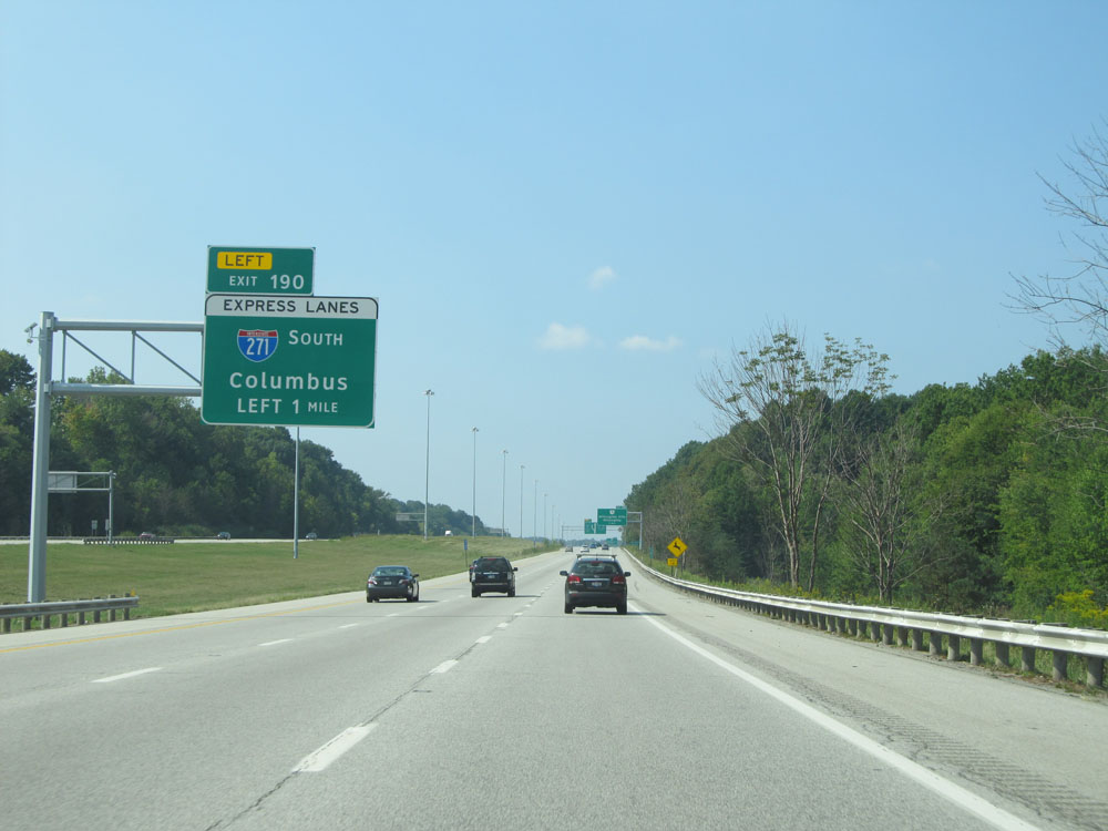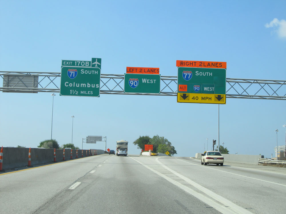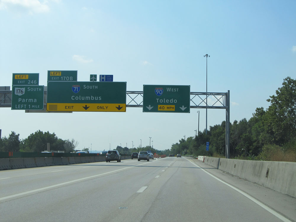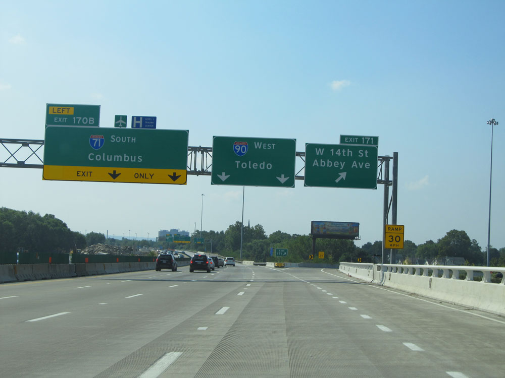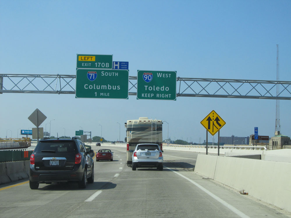 Interstate 90 West at Exit 170B: Interstate 71 South - Columbus (Photo taken 9/6/15).