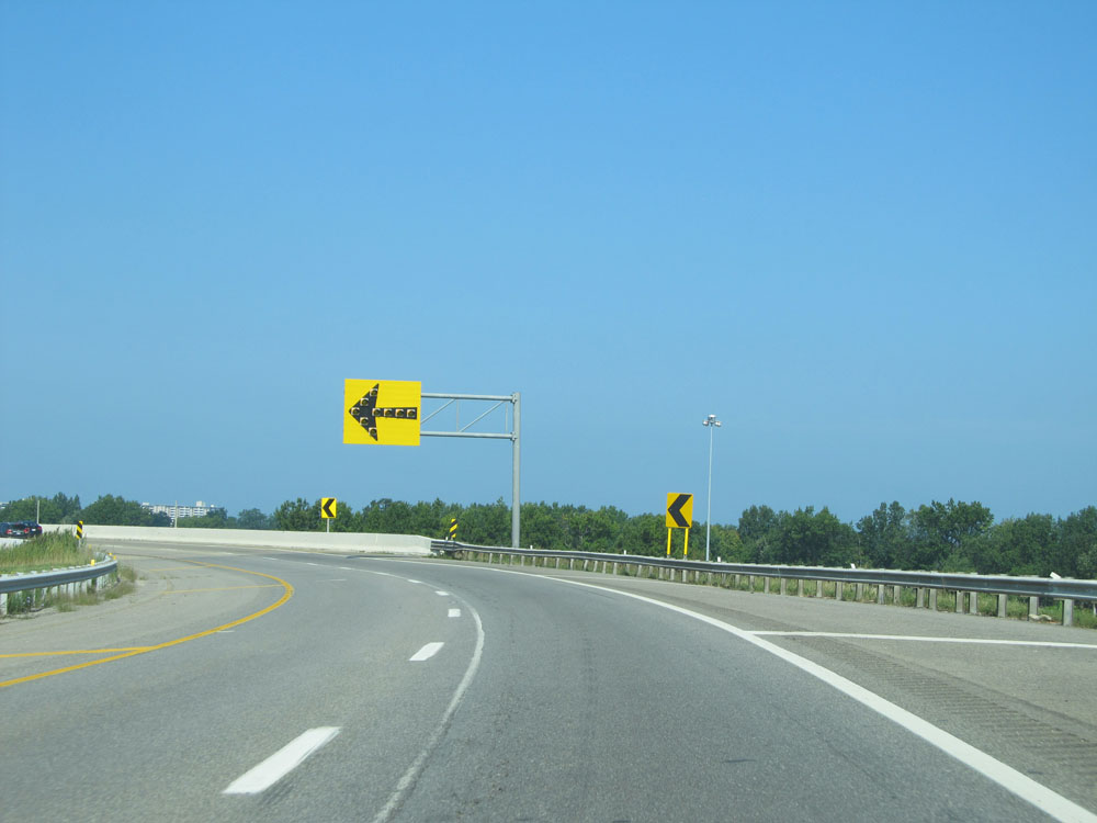 Soon after, the ramp to Interstate 80 / Ohio Turnpike divides into 2 lanes. (Photo taken 9/6/15).