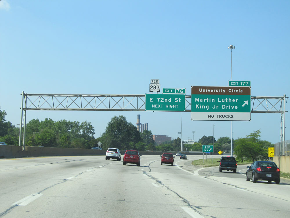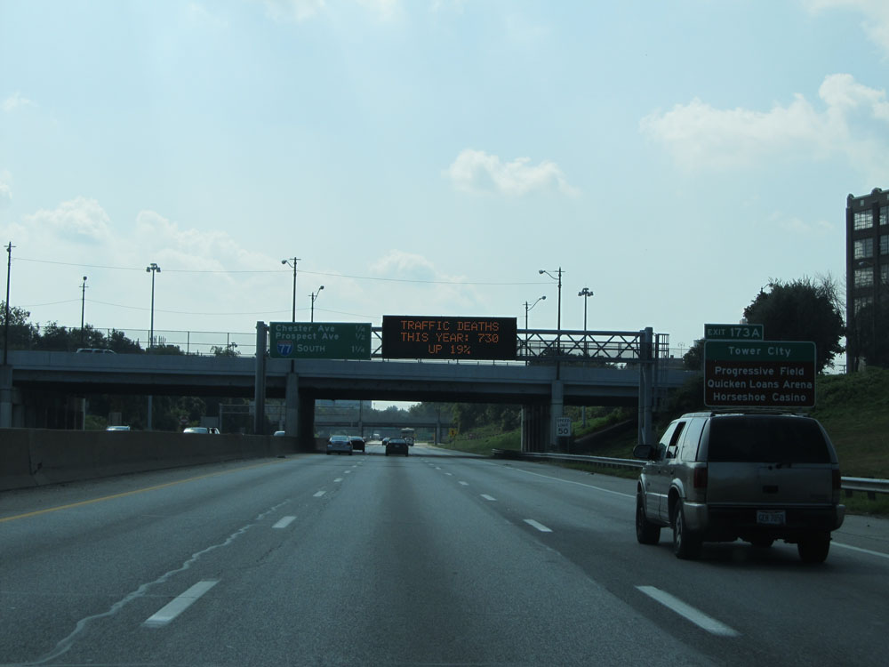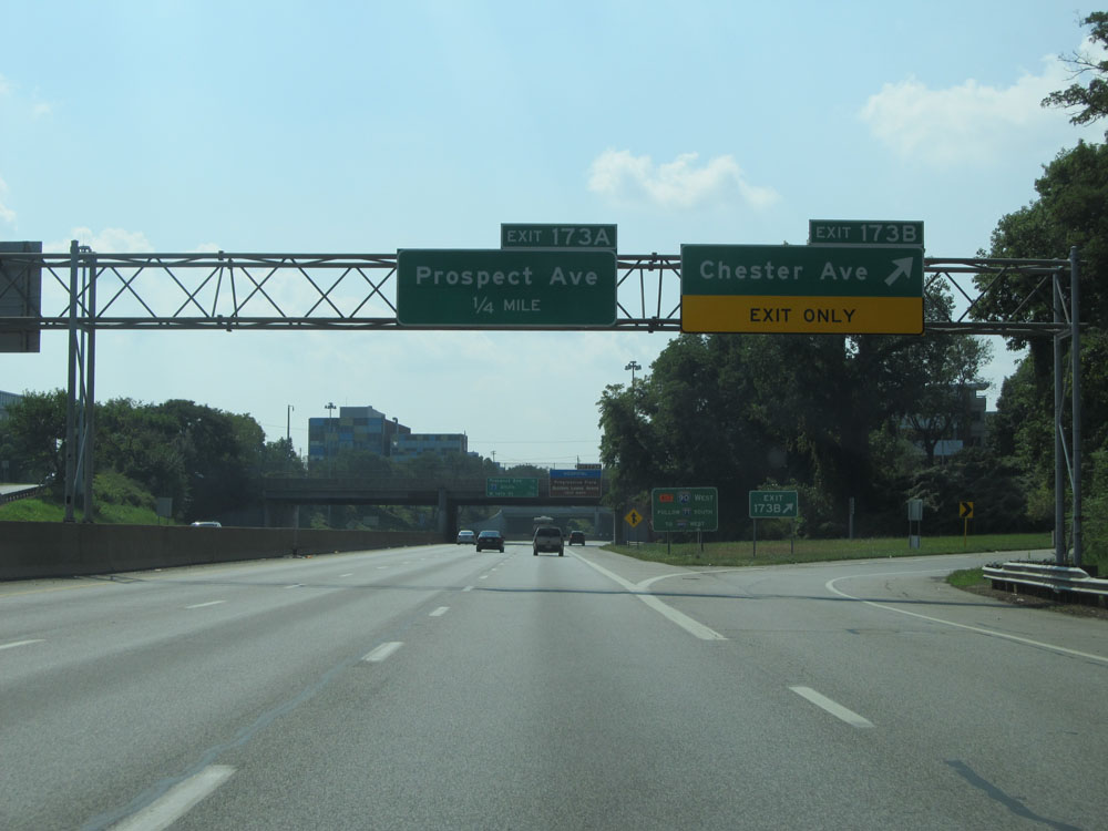 Interstate 90 West at Exit 173B: Chester Ave (Photo taken 9/6/15).