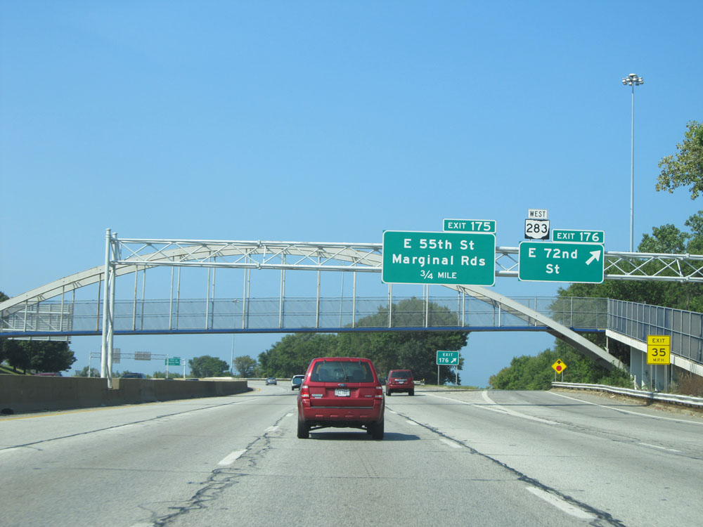 Interstate 90 West at Exit 175: E 55th St / Marginal Rds (Photo taken 9/6/15).