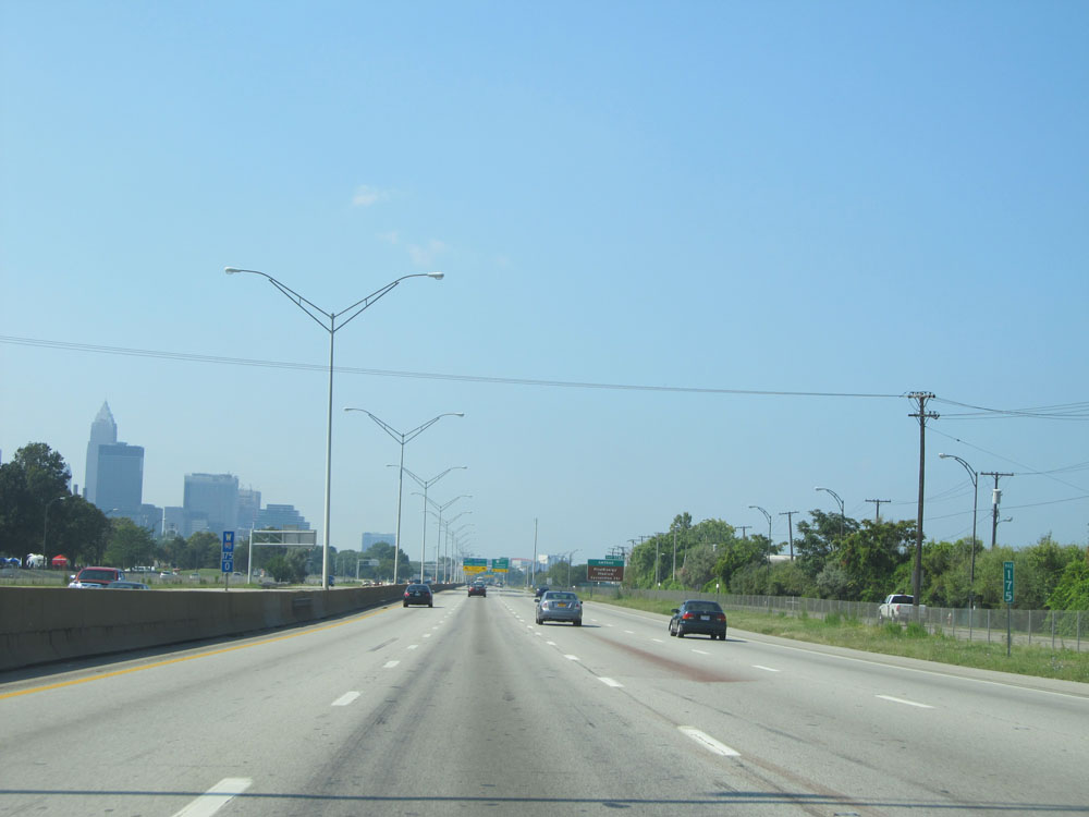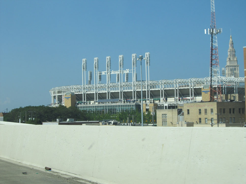 Just beyond Exit 172A, we get a nice view of Progressive Field, home of the Cleveland Indians, from Interstate 90. (Photo taken 9/6/15).