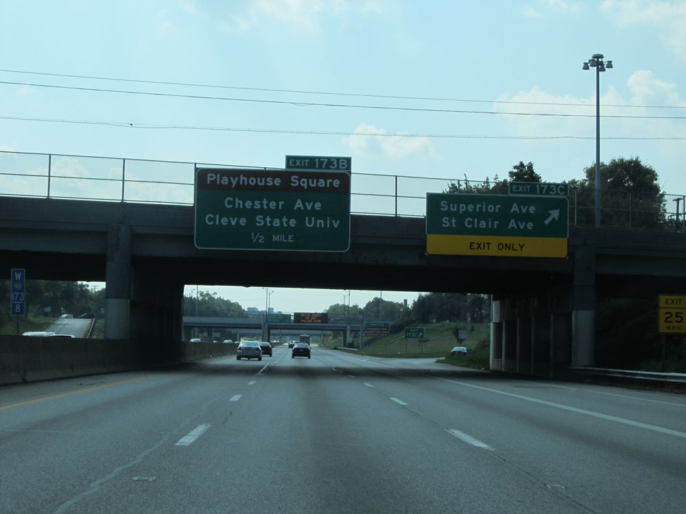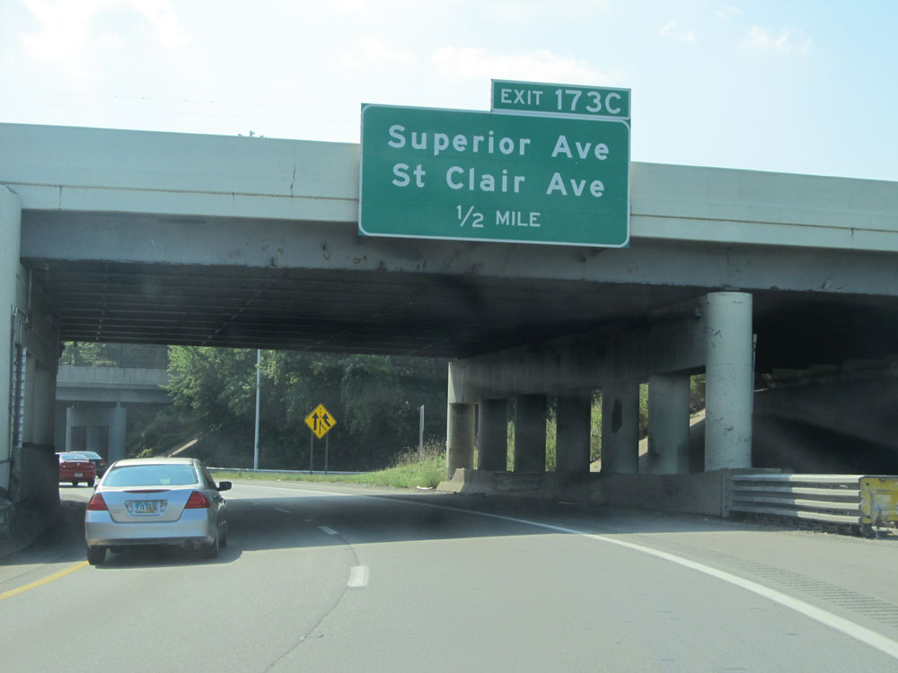 Interstate 90 West at Exit 173C: Superior Ave / St Clair Ave (Photo taken 9/6/15).