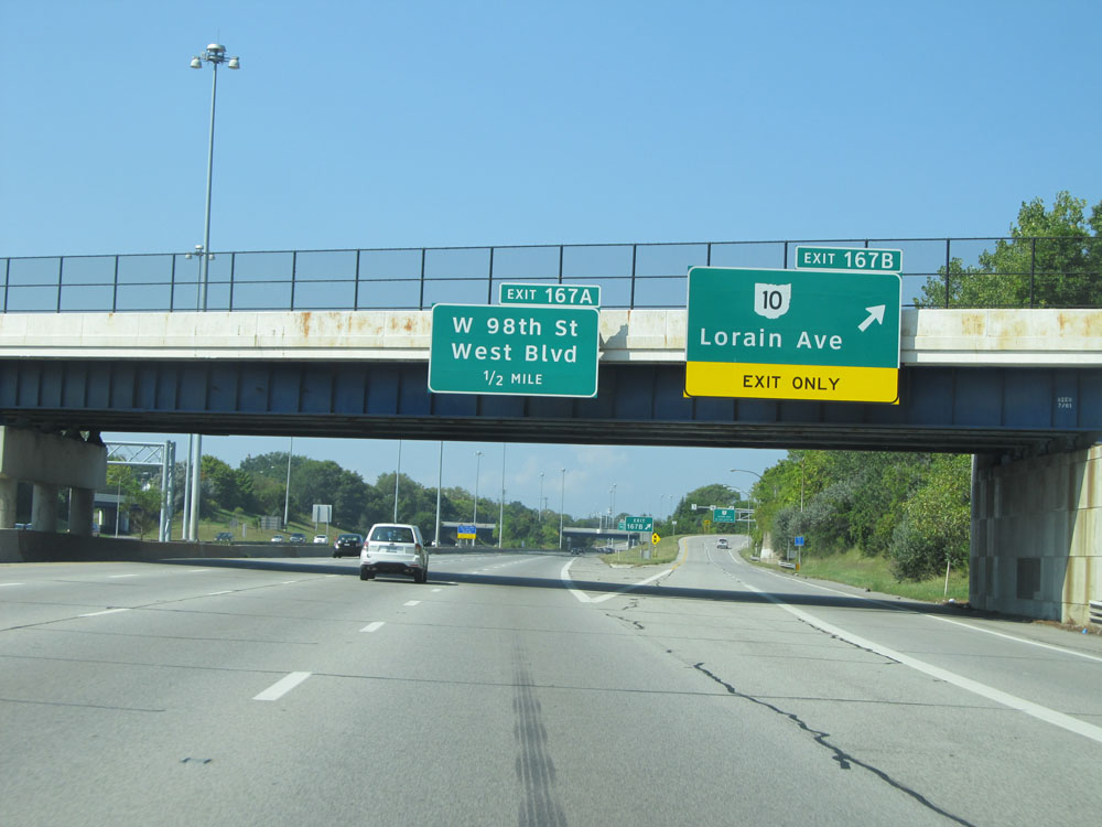 Interstate 90 West at Exit 167B: OH 10 - Lorain Ave (Photo taken 9/6/15).