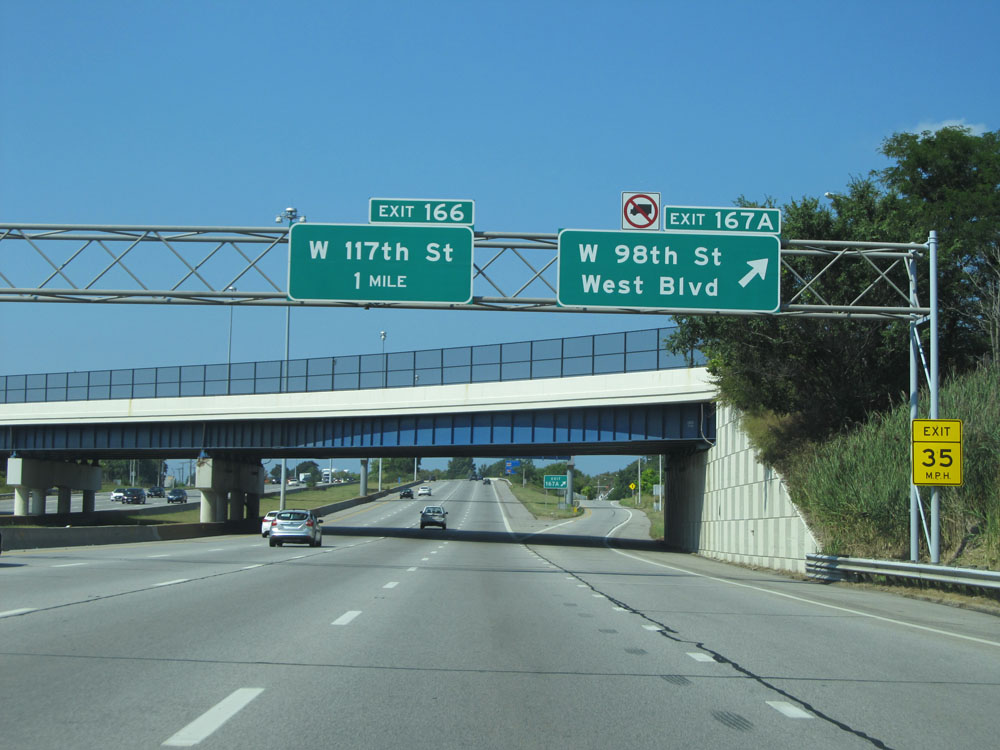 Interstate 90 West at Exit 167A: W 98th St / West Blvd (Photo taken 9/6/15).