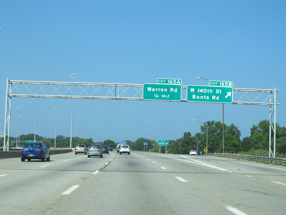 Interstate 90 West at Exit 165B: W 140th St / Bunts Rd (Photo taken 9/6/15).