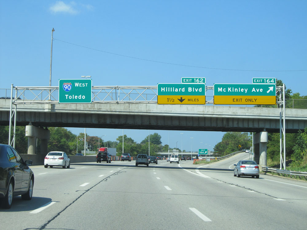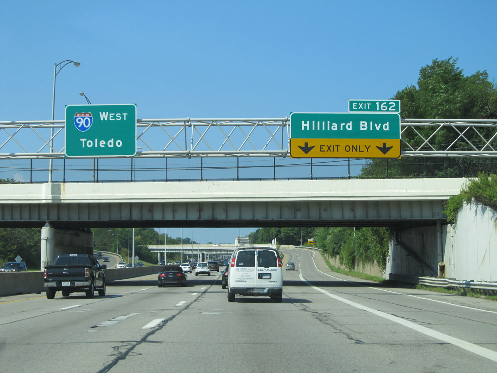 Interstate 90 West at Exit 162: Hilliard Blvd (Photo taken 9/6/15).
