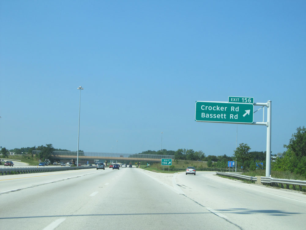 Interstate 90 West at Exit 156: Crocker Rd / Bassett Rd (Photo taken 9/6/15).