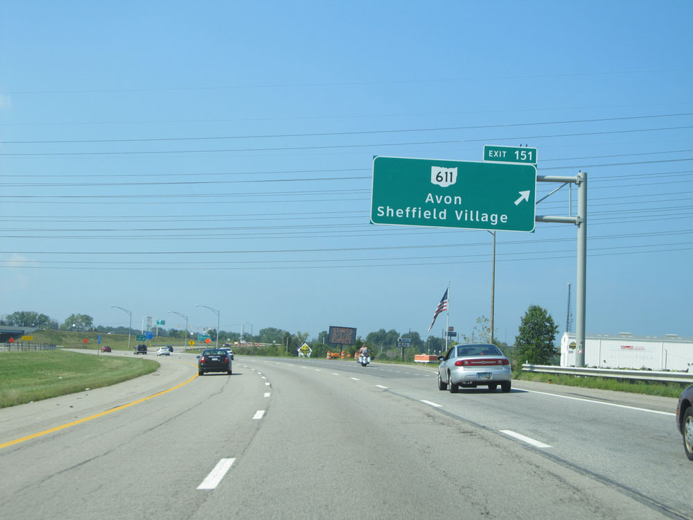 Interstate 90 West at Exit 151: OH 611 - Avon / Sheffield Village (Photo taken 9/6/15).