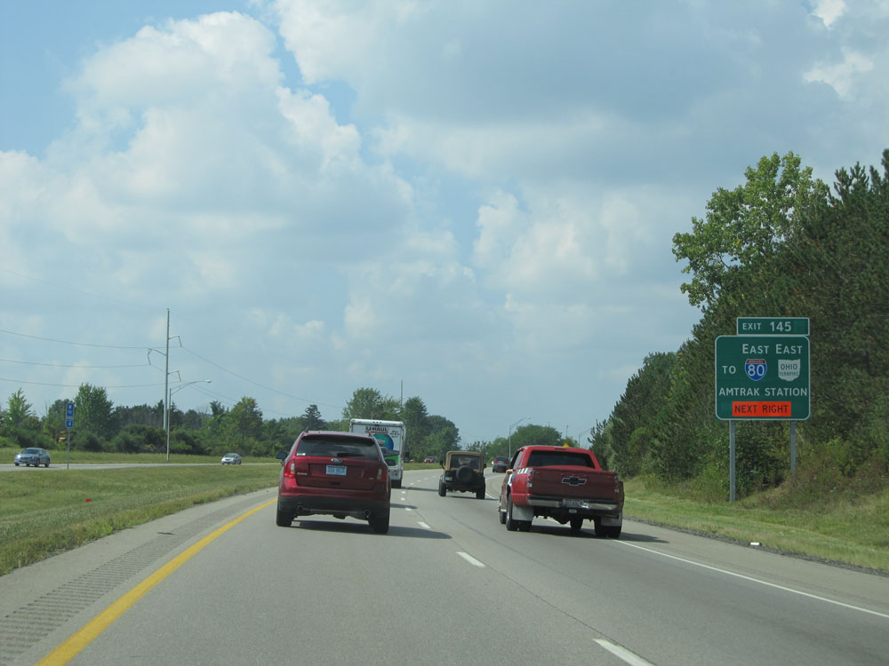 Take Exit 145 to Interstate 80 (Ohio Turnpike) East and AMTRAK Station. (Photo taken 9/6/15).