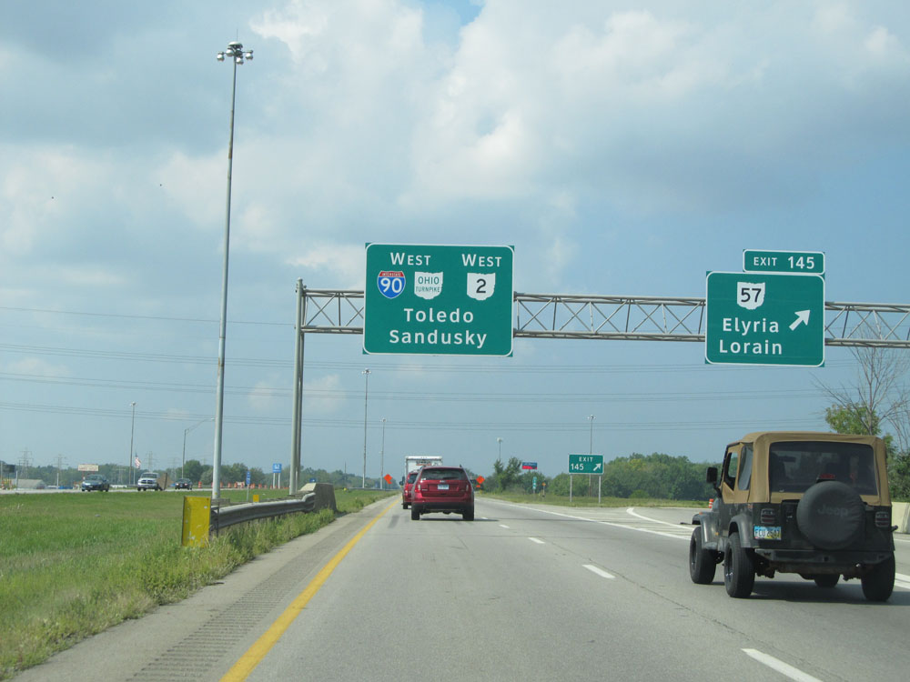 Interstate 90 West at Exit 145: OH 57 - Elyria / Lorain (Photo taken 9/6/15).