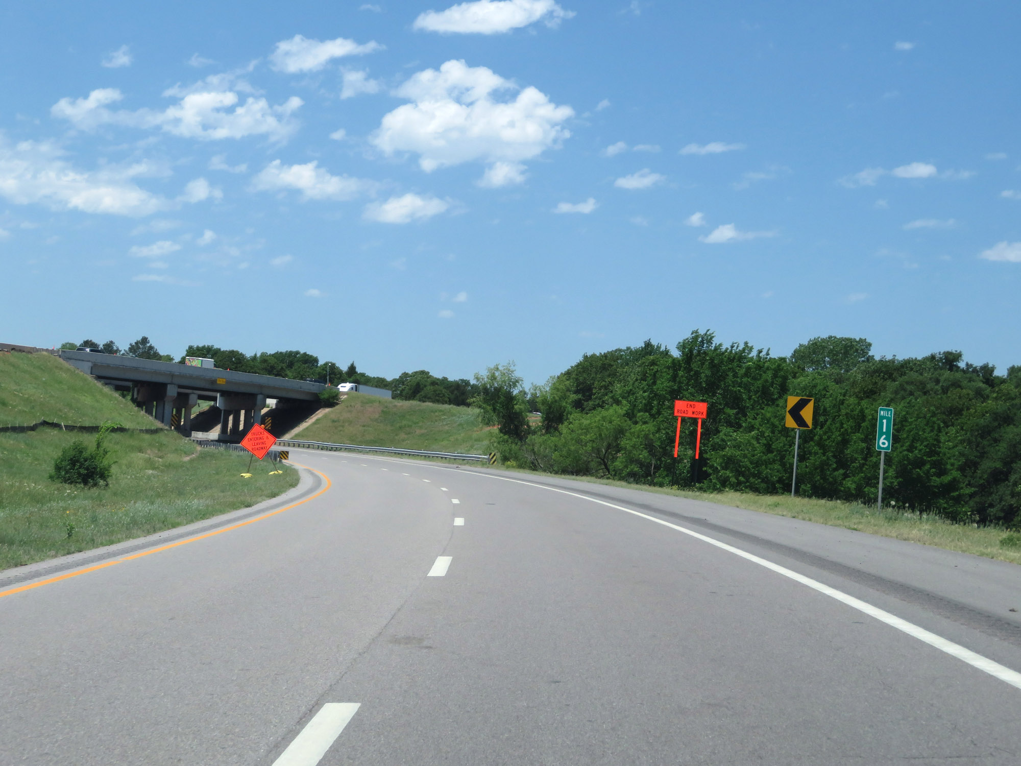 Nearing the junction of Interstate 35, the maximum speed limit decreases further to 60 mph. (Photo taken 5/18/18). |