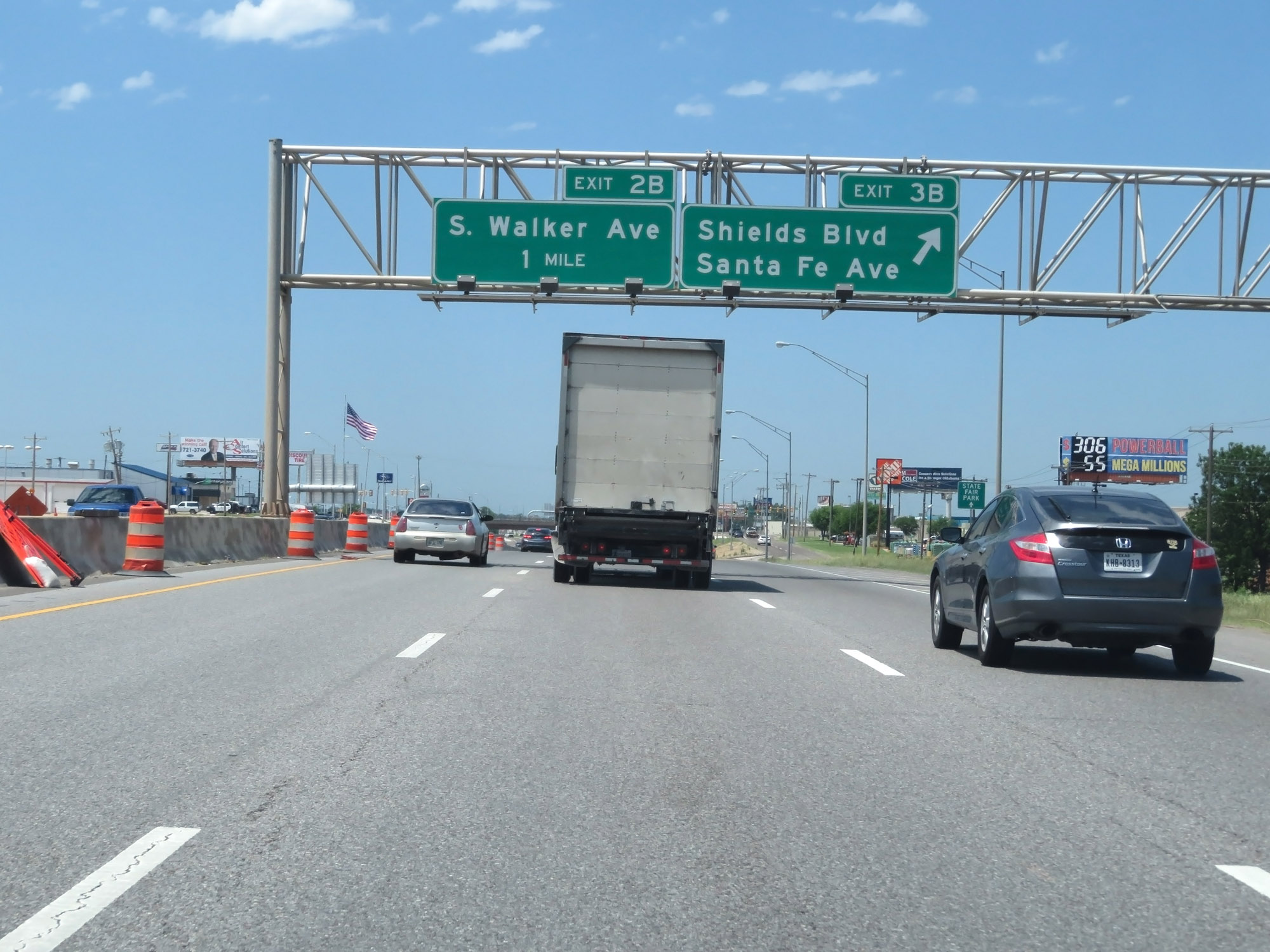 Interstate 240 West at Exit 3B: Shields Blvd / Santa Fe Ave (Photo taken 5/18/18). |