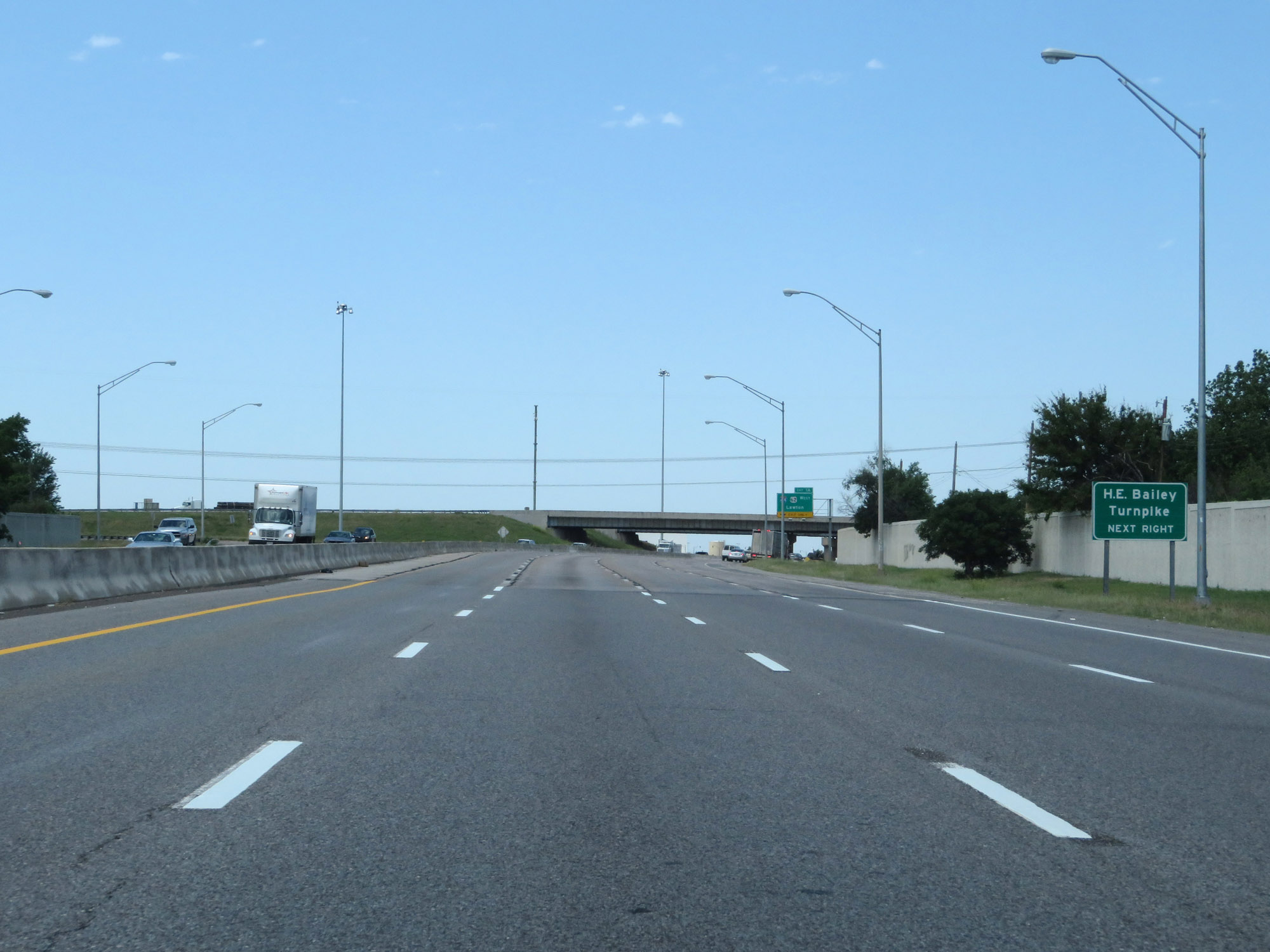 Take Exit 1A (Interstate 44 West) to the H.E. Bailey Turnpike. (Photo taken 5/18/18). |