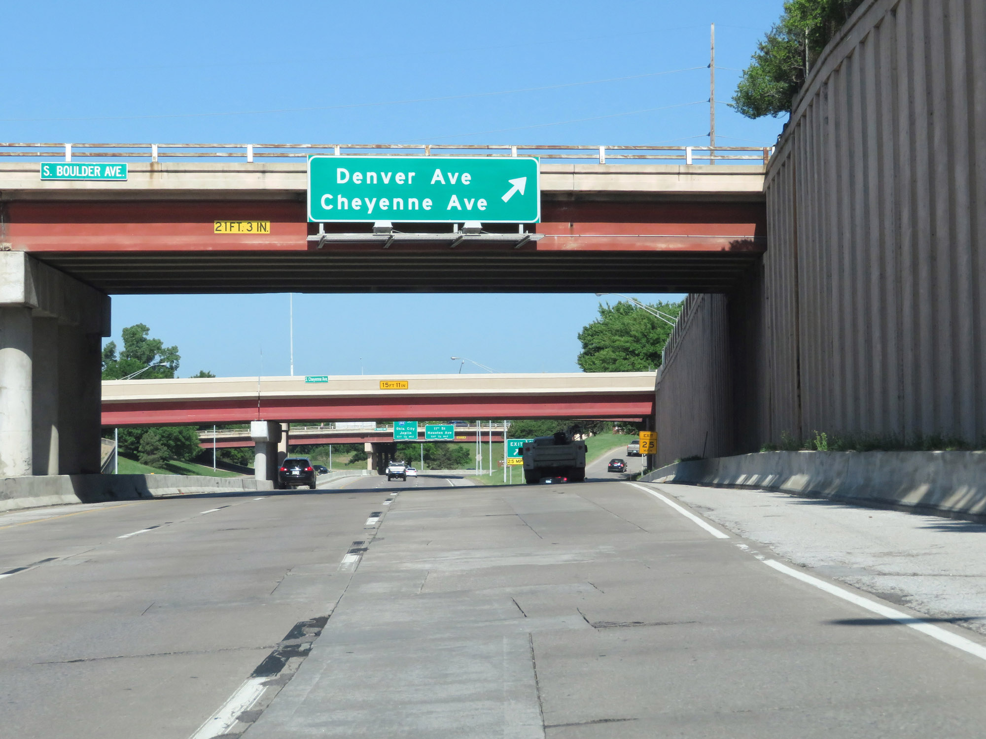 Unsigned Interstate 444 West / US 75 South / US 64 West at Exit: Denver Ave / Cheyenne Ave (Photo taken 5/18/18). |