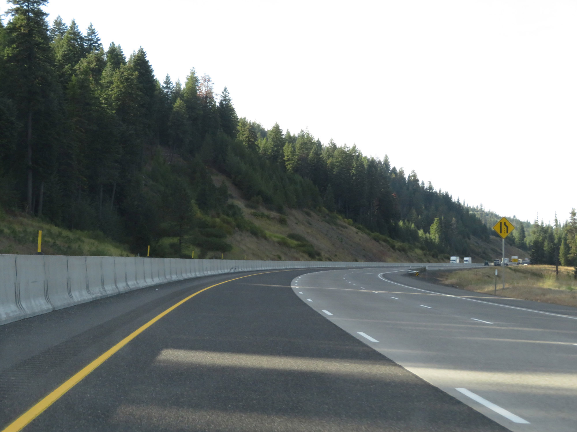 Interstate 84 West curves sharply to the north as it continues to lose altitude. This is one of a few sharp curves on the descent of Deadman Pass. (Photo taken 9/25/19). |