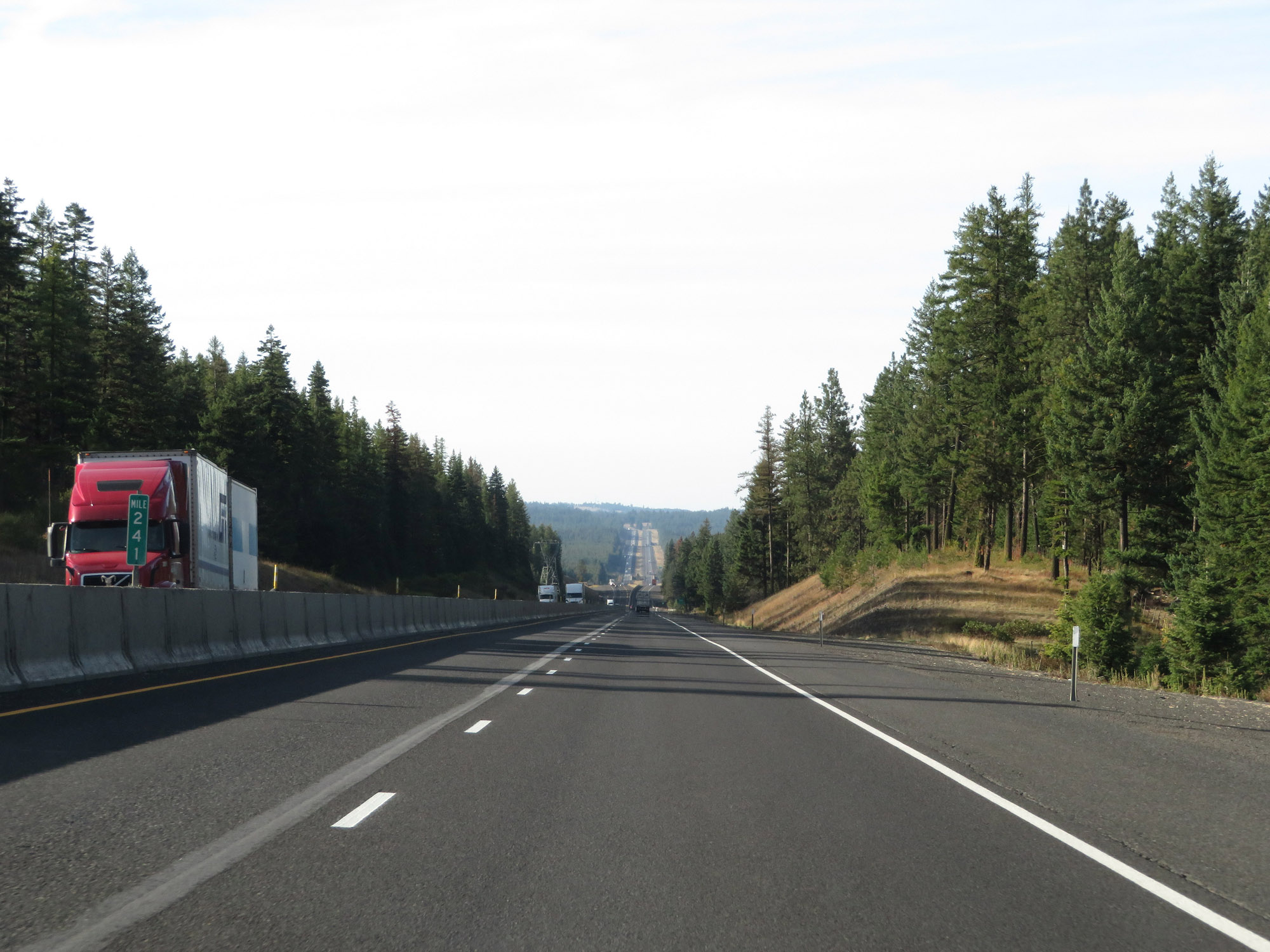Here, Interstate 84 West finally reaches the summit of the Blue Mountains in Umatilla County at an elevation of 4,193 feet. (Photo taken 9/25/19). |