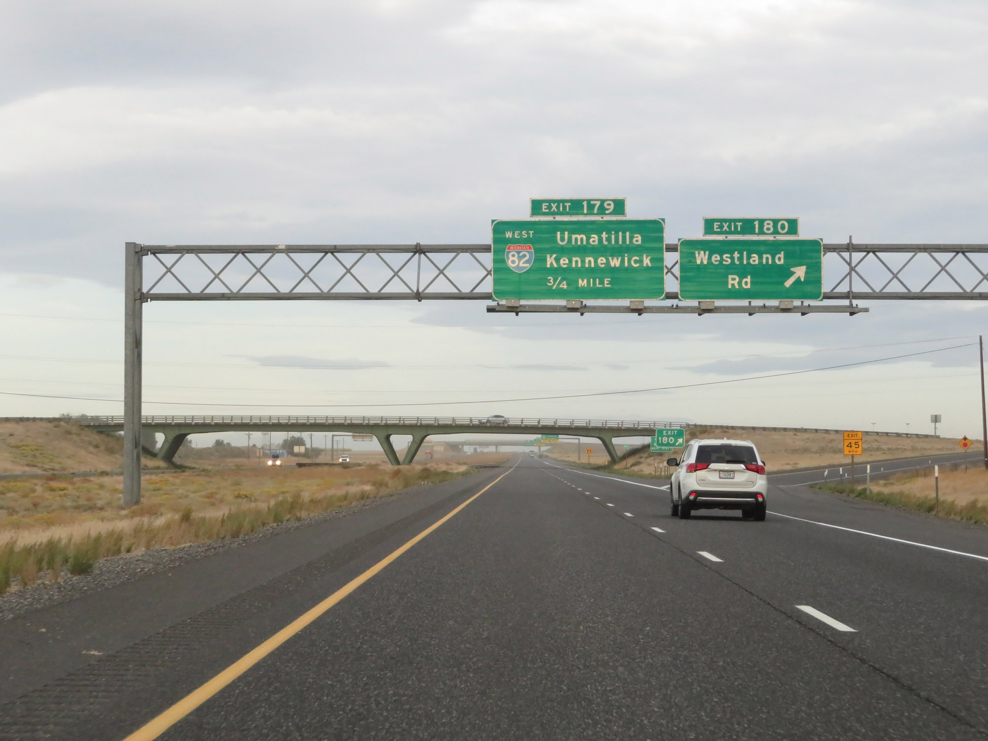At Exit 243, Interstate 84 West enters Umatilla County. (Photo taken 9/25/19). |