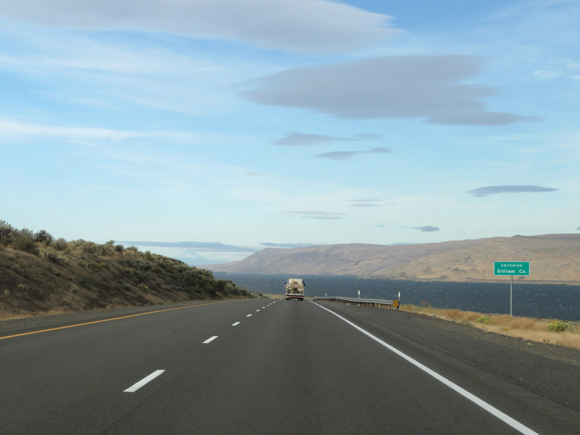 Interstate 84 West as the climbing lane comes to an end. (Photo taken 9/25/19). |
