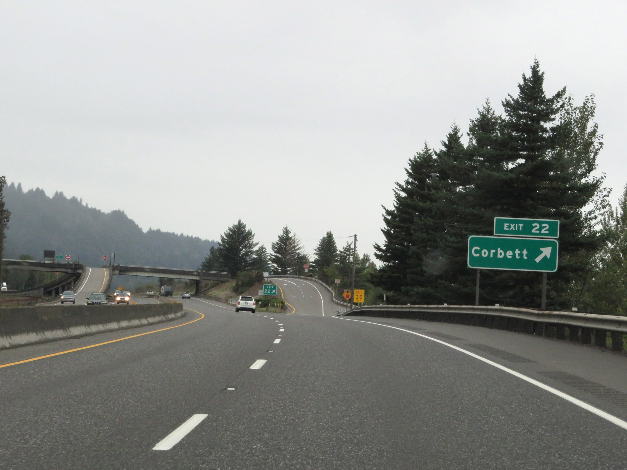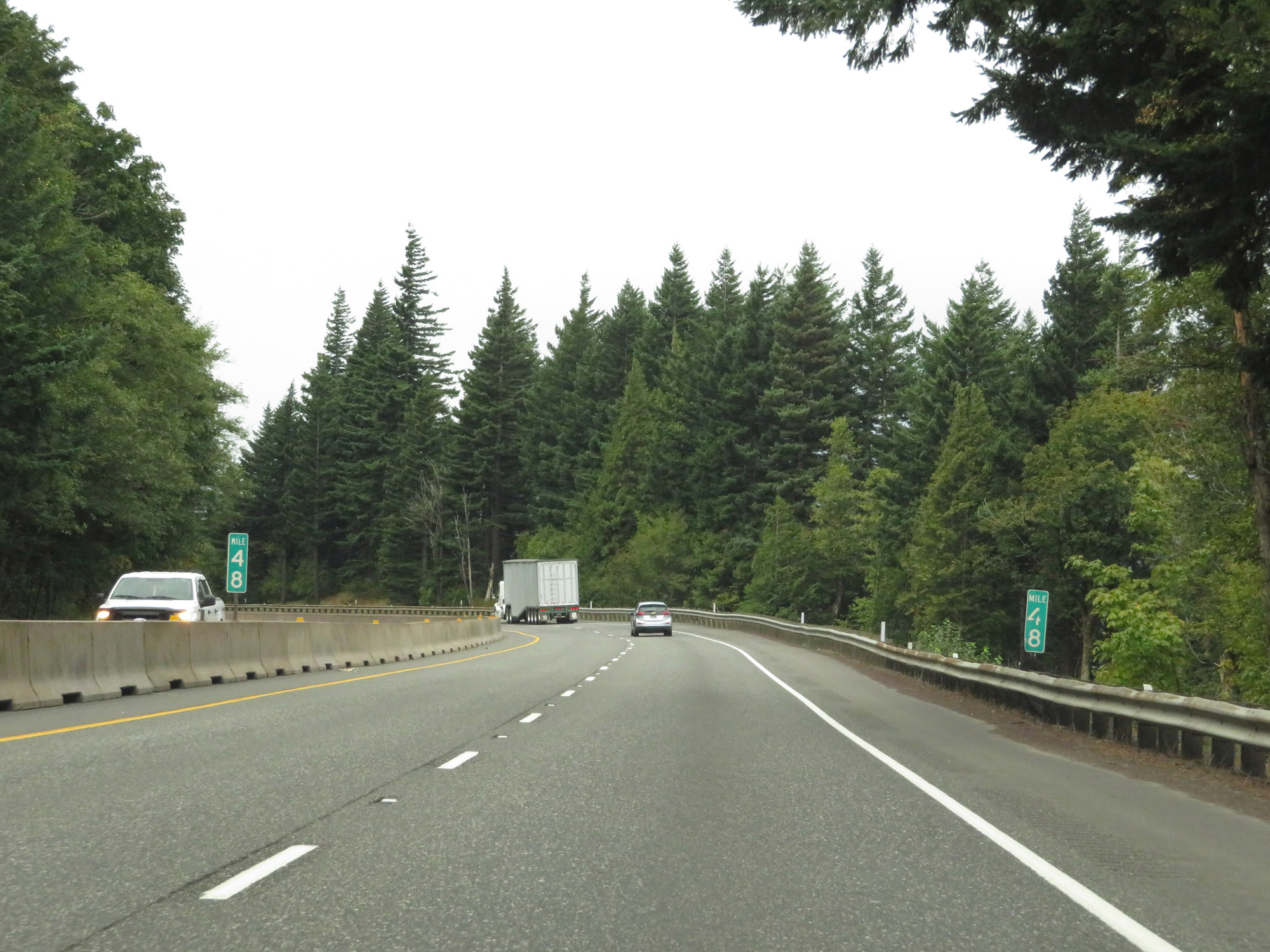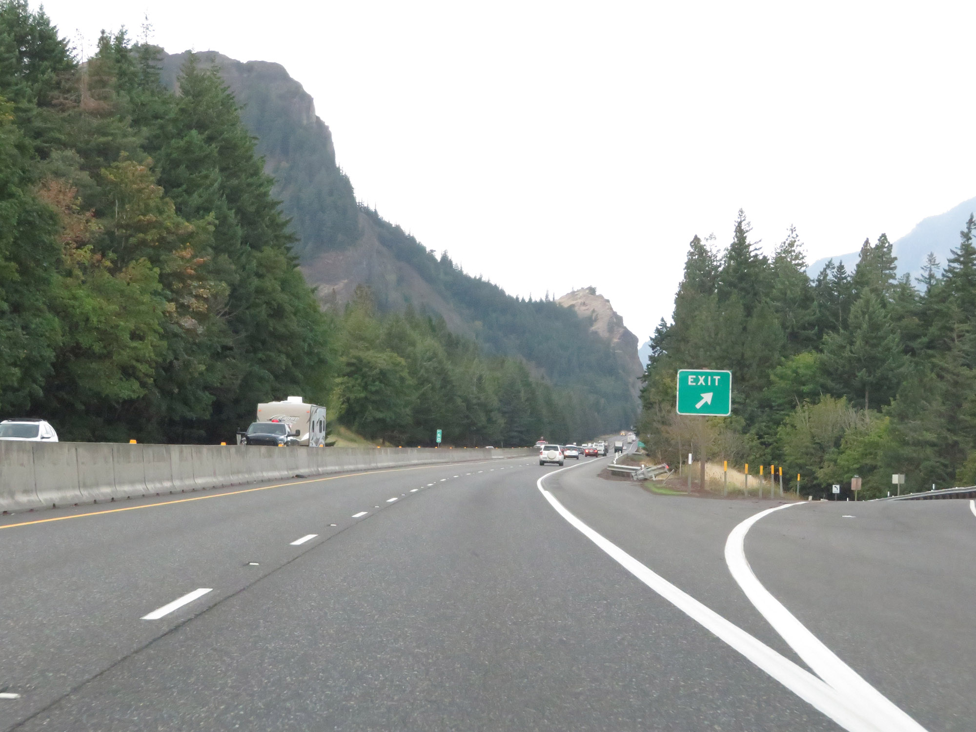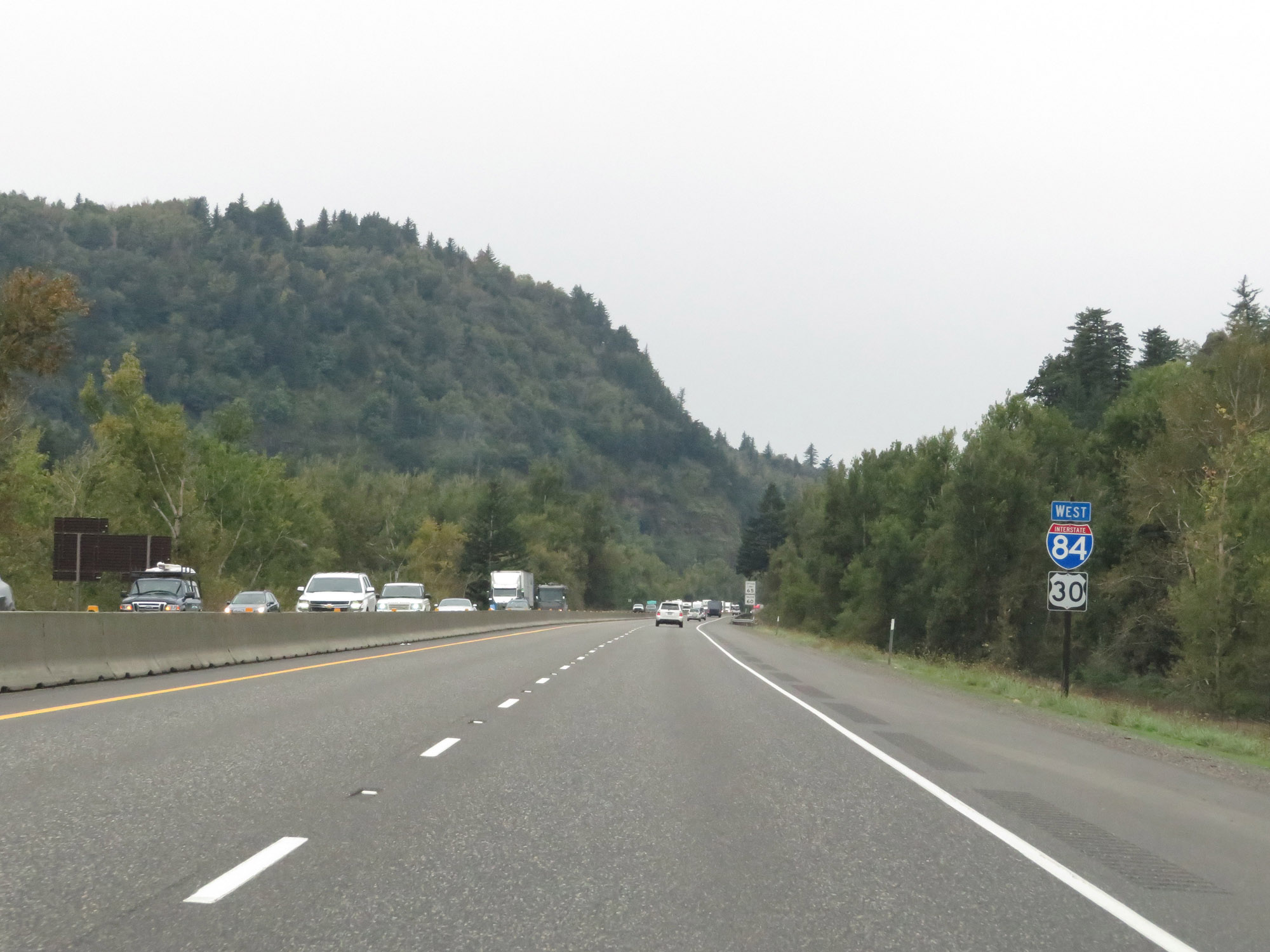 View on Interstate 84 West as the sharp curves begin. (Photo taken 9/25/19). |