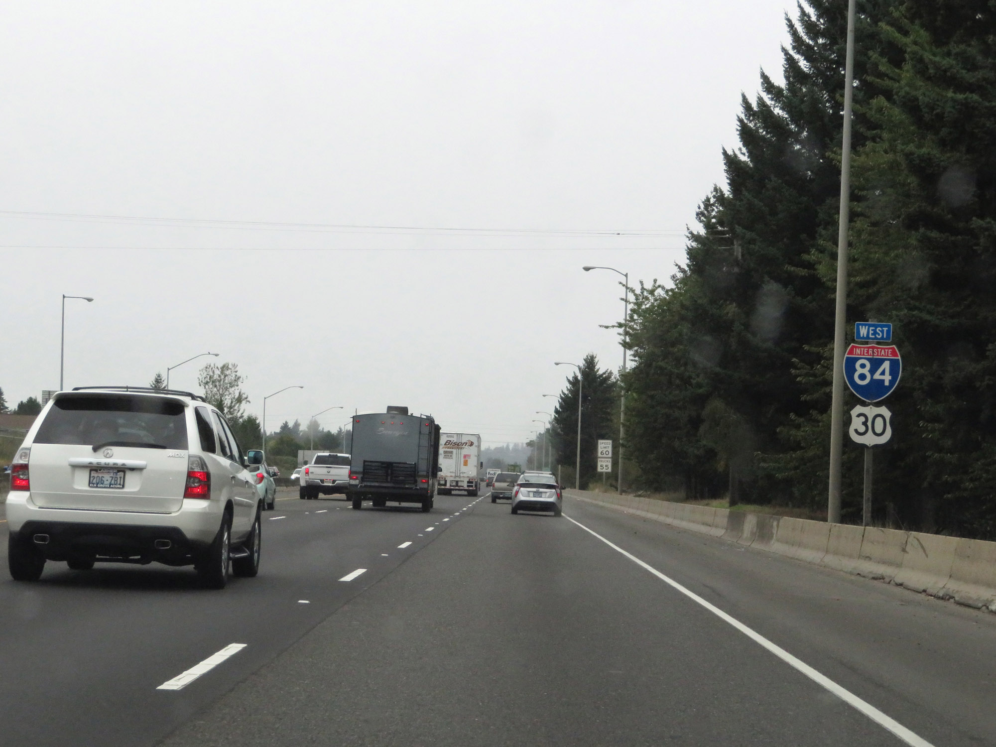 Interstate 84 West / US 30 West reassurance shields. (Photo taken 9/25/19). |