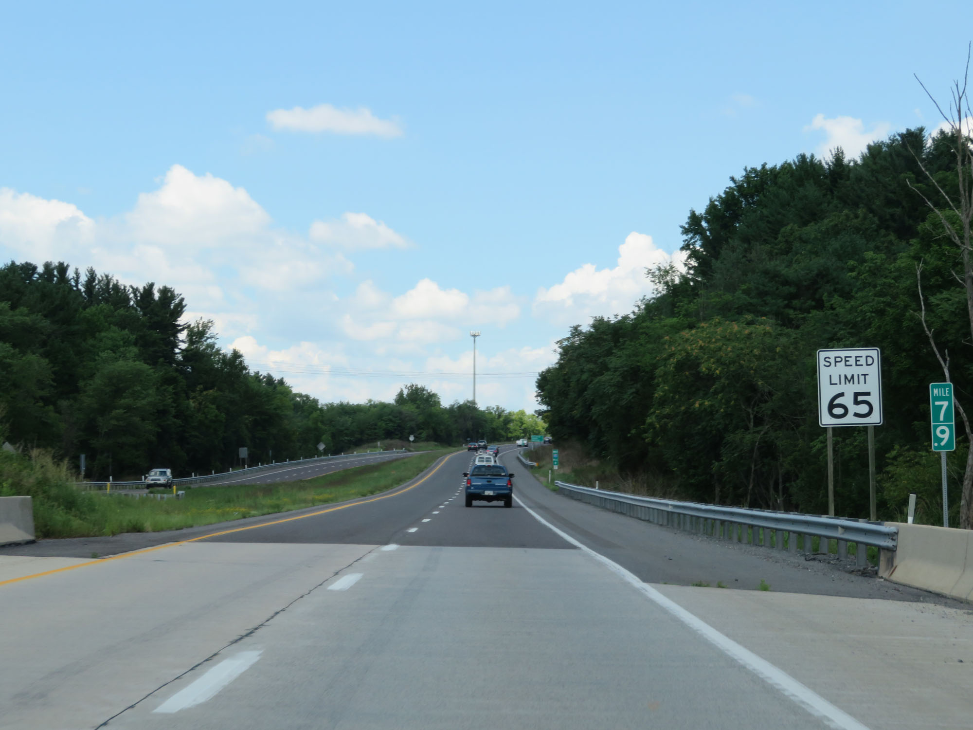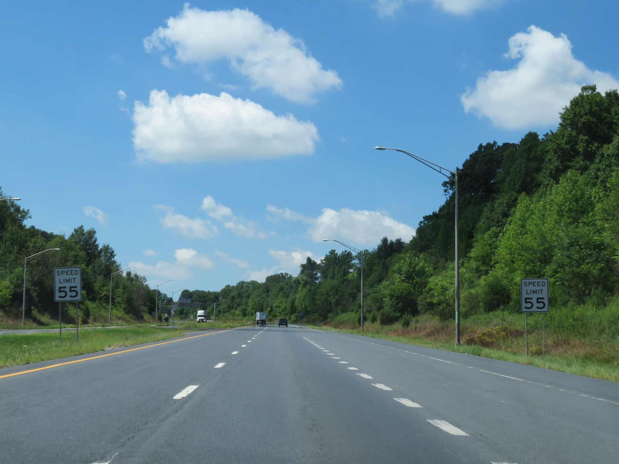 Approaching Exit 10, the speed limit decreases to 55 mph. (Photo taken 8/19/16). |
