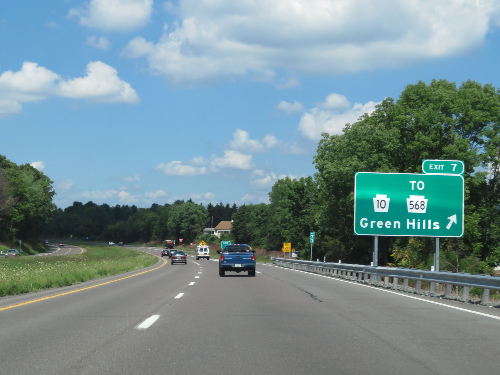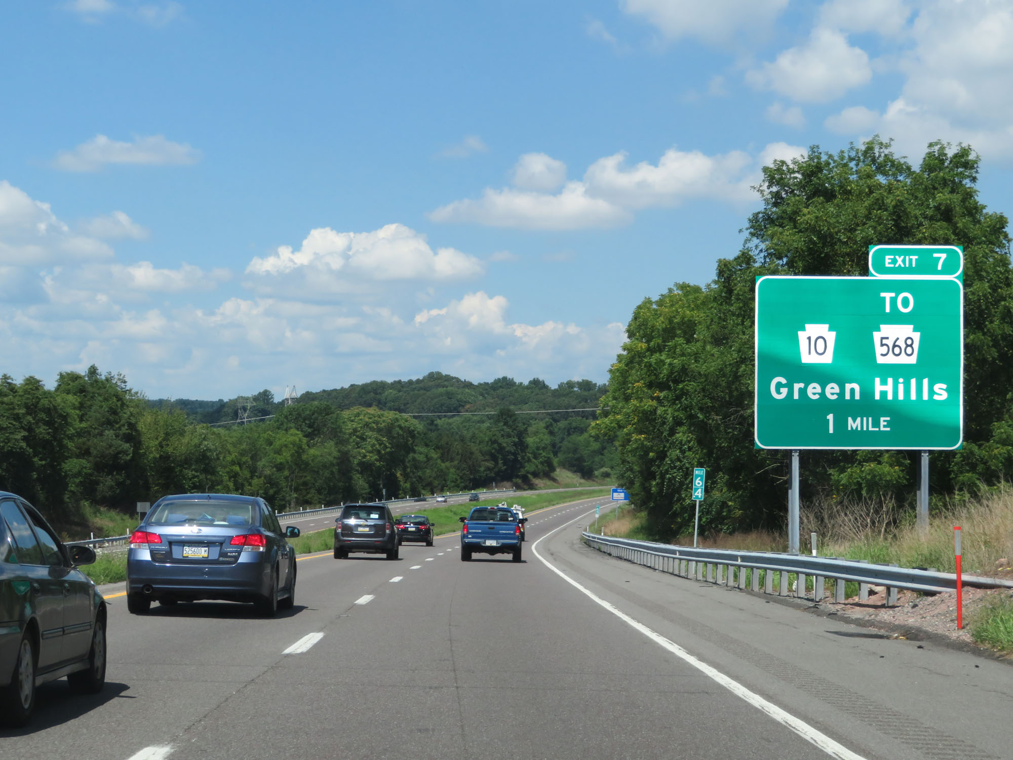Interstate 176 North at Exit 7: PA 10 / To PA 568 - Green Hills (Photo taken 8/19/16). |